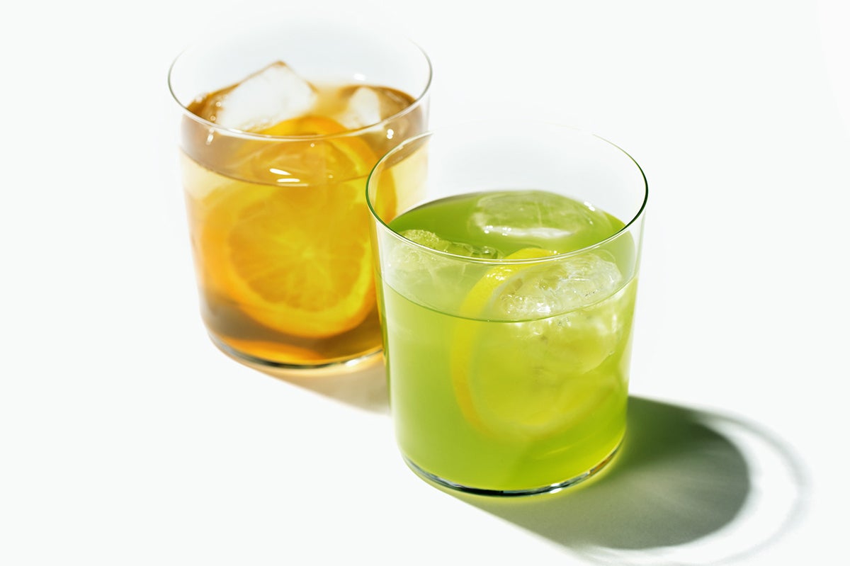 それは、レモンなどの柑橘系の果物をぶつ切りにしてグラスに入れ、上から水出し緑茶を注ぐというもの。グリーングラスブリューティーの水出し緑茶は、抹茶風味が感じられるので、柑橘系の果物と相性抜群! さっぱりと飲める夏らしい味わいです。