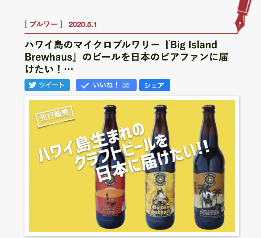 ハワイ島のマイクロブルワリー『Big Island Brewhaus』のビールを日本のビアファンに届けたい! クラウドファンディング開始
