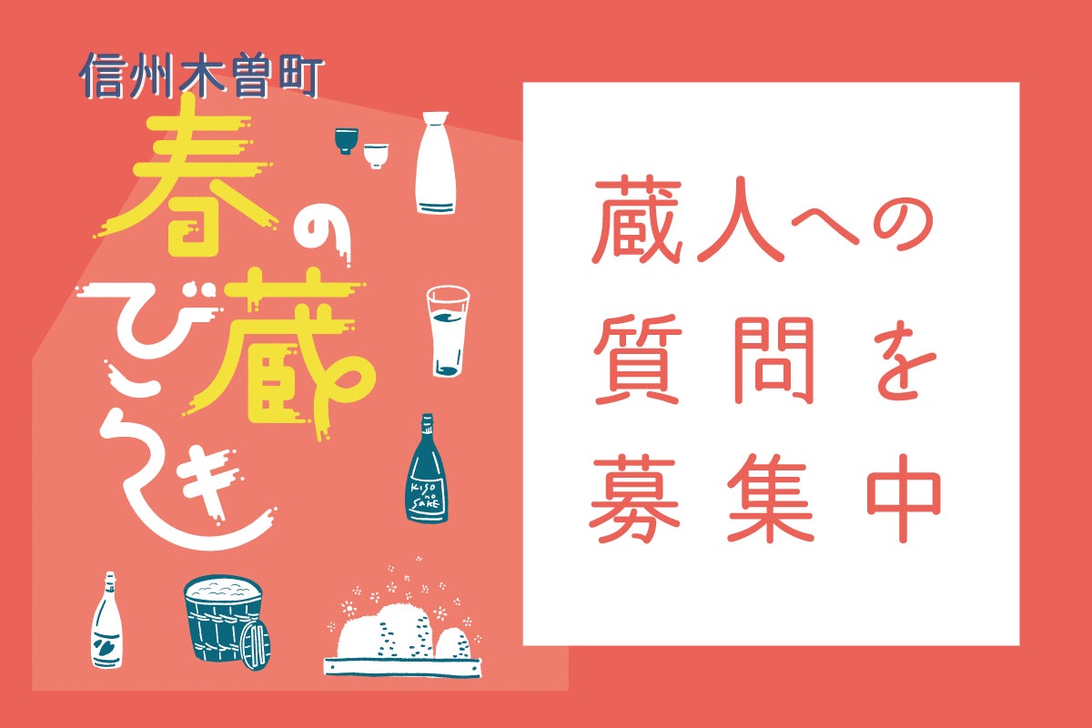 こんにちは。蔵開き実行委員会の坂下です。現在、ギフトやチケットに同封させていただく「蔵びらき特別冊子」を作っており、その冊子に掲載する「蔵人一問一答」の質問内容を皆さんから募集したいと考えております。普段のイベントでは、ゆっくり聞けないことをこの機会に蔵人のみなさんに聞いてみませんか!?質問フォーム:https://forms.gle/12Nsb65SPYdhNnut8「蔵びらきに行ってみたかった」「楽しみにしていた」という皆さんと蔵開きギフト作成の過程を共有できればと思っています。どんな質問でもOK!完成した冊子が届くのを、ドキドキワクワクお待ちください。期限は、5月10日(日)となります!連休中、ゆっくり考えてもらって大丈夫です。もしお酒やお味噌、発酵好きのご友人の方などがいたら、本企画をシェアしていただき、どんどんご質問いただけましたら嬉しく思います!!どうぞよろしくお願いいたします。【蔵開き実行委員会】https://camp-fire.jp/projects/view/255641※お名前は、本名でもニックネームでも構いませんが、冊子のQ&Aコーナーに掲載させていただきますので、ご了承ください。※本質問は、蔵びらき冊子をはじめ、信州木曽町 春の蔵びらきに関わるコンテンツにて利用させていただきます。また全ての質問にはお答えできかねます。ご了承ください。