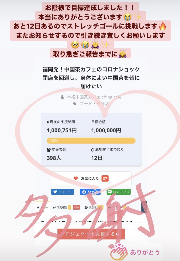 沢山のご支援、本当にありがとうございます!!