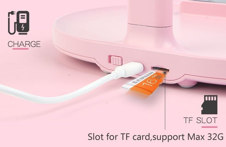 MP3等の音楽ファイルを保存したマイクロSDカードをスロットに挿入し音楽を再生させる事ができます。複数ファイルがある場合は、順番に再生します。操作してファイルを選ぶ事もできます。(マイクロSDカードは最大32G容量まで対応) SDカードは付属していません。別途、ご準備下さい。