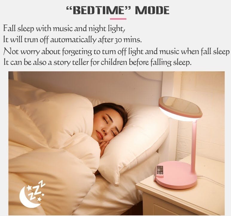 またタイマー設定をすれば、朝、設定された時刻に読書灯が点灯するのと同時にアラーム音の代わりにお気に入りの音楽で目覚める事もできます。新しい一日をお気に入りの音楽を聴きながらスタートさせましょう ! *SDカードが挿入されていない場合は、内蔵のアラーム音が鳴ります。