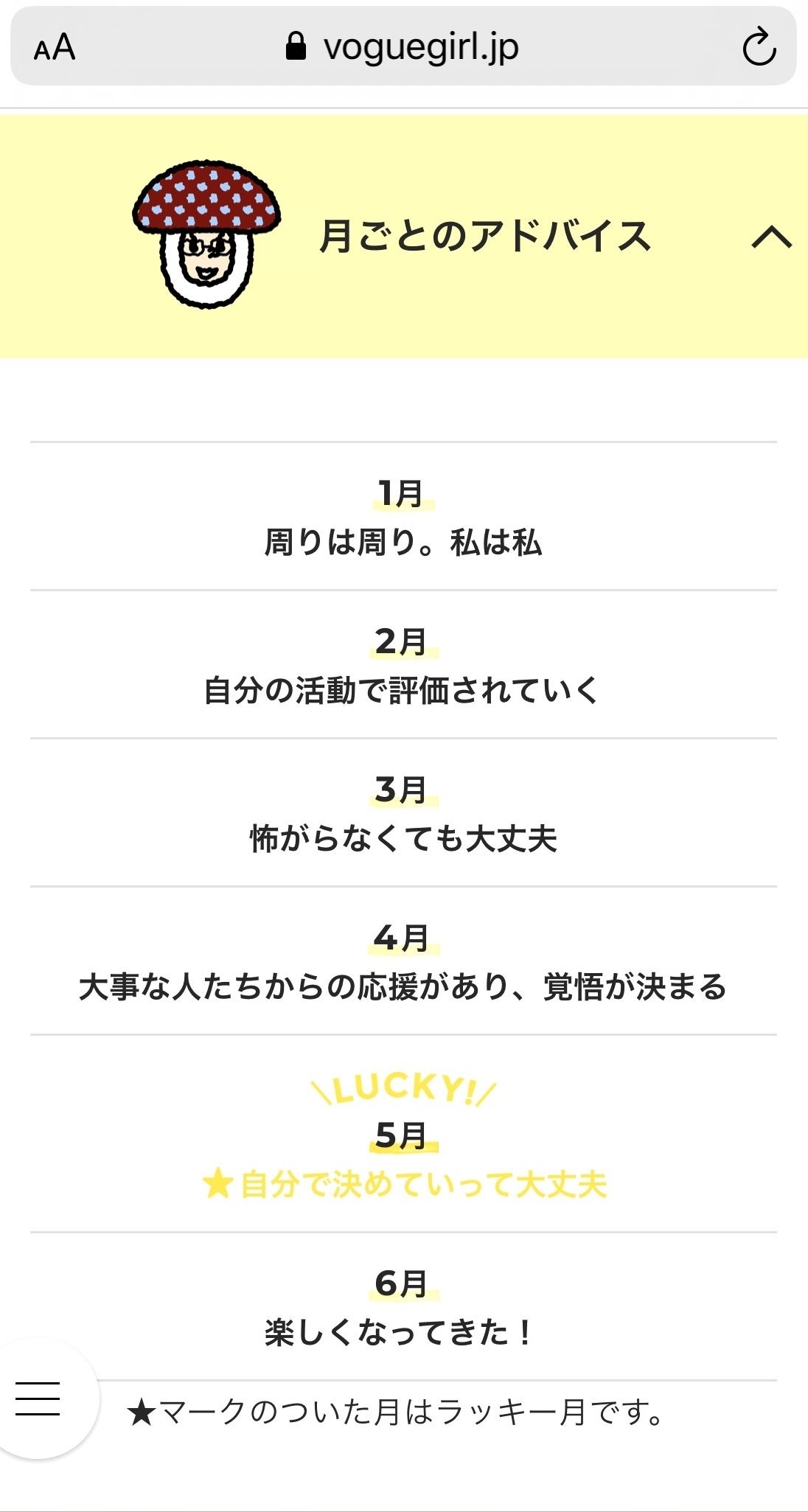 数年前に私についてくれていた若い乙女なパーソナルトレーナーから興奮気味に教わって以来、半年おきに見てるのですが(笑。20××年上半期、とかいうカタチでネットにあがっているのです。週間でもやっているらしいのですが私はこの半年おきのものしかみてなくて)、昨年末に今年の上半期の占いをやっていた、その画面が、今日、写真を整理していたらでてきたんですね。