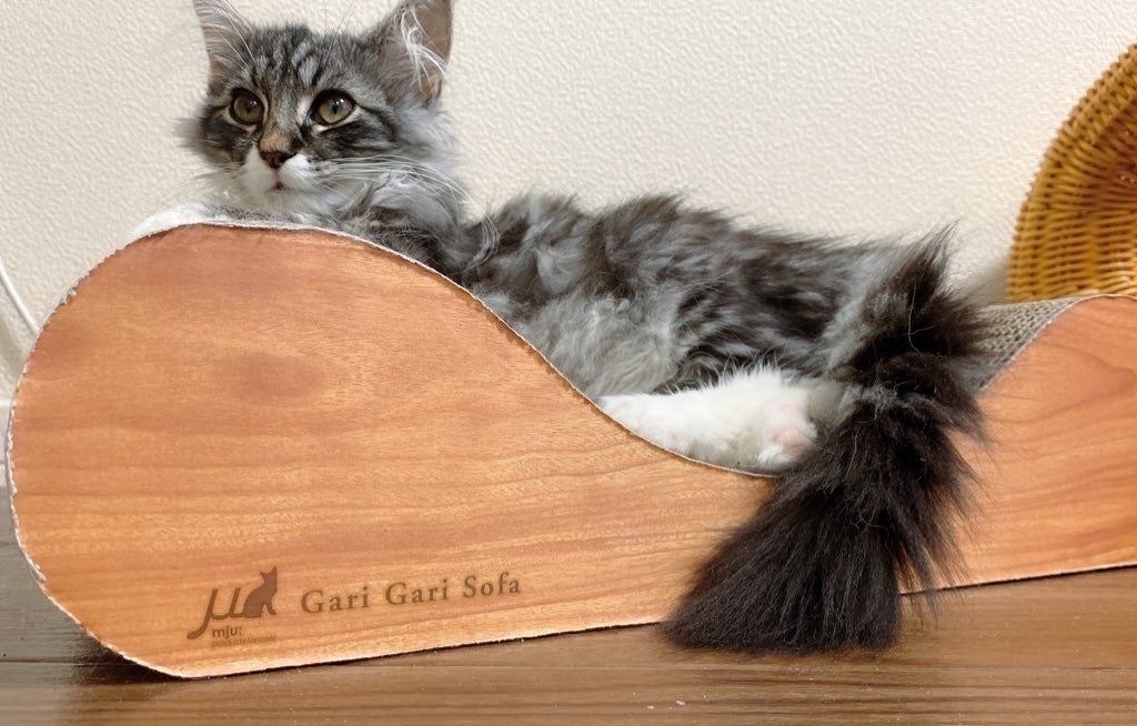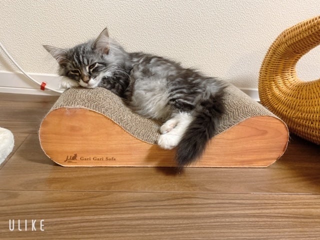 元からでこぼこしている爪とぎ兼用ベッドがお気に入りでしたが、腹水でお腹が腫れている部分が凹みにおさまり体勢が楽になるみたいです。