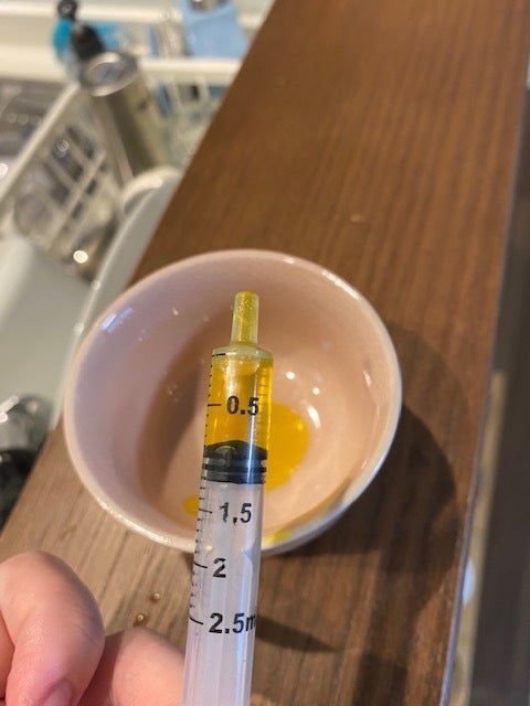 貧血防止の栄養剤を1日2回、1回あたり1mlを注射器で与えます。