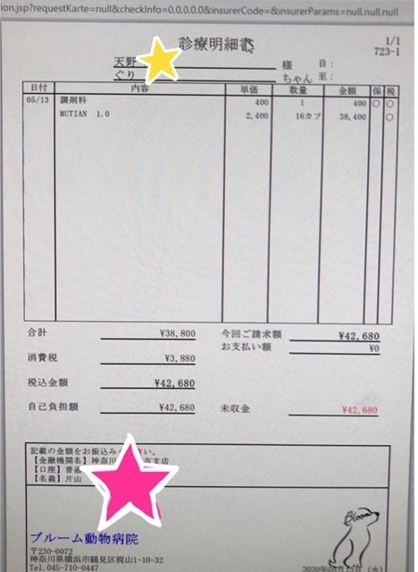 追加の薬代は4万2000円でした。夕方になってしまったので明日5/14に振込します。