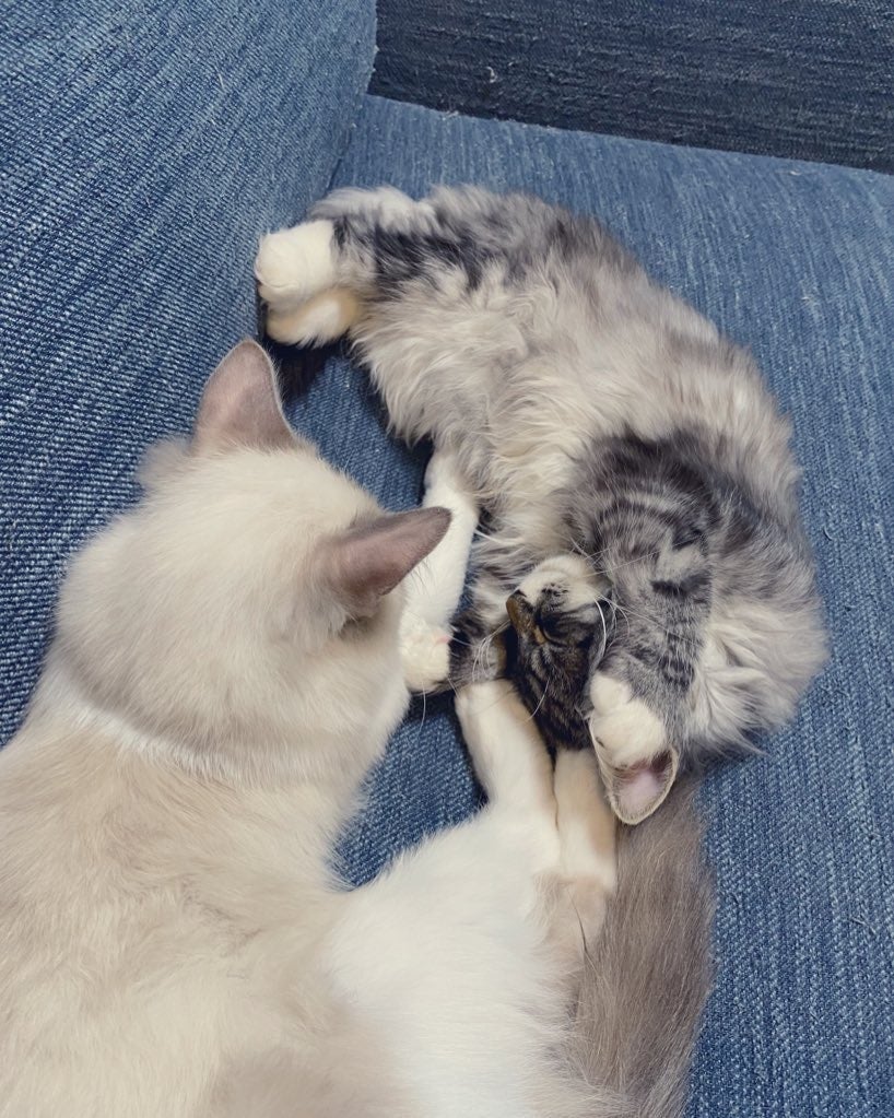 (最後に、最近のぐりとぐらです。投薬が終わるとお兄ちゃんのぐらが、ぐりを抱きしめてくれます。(:;))