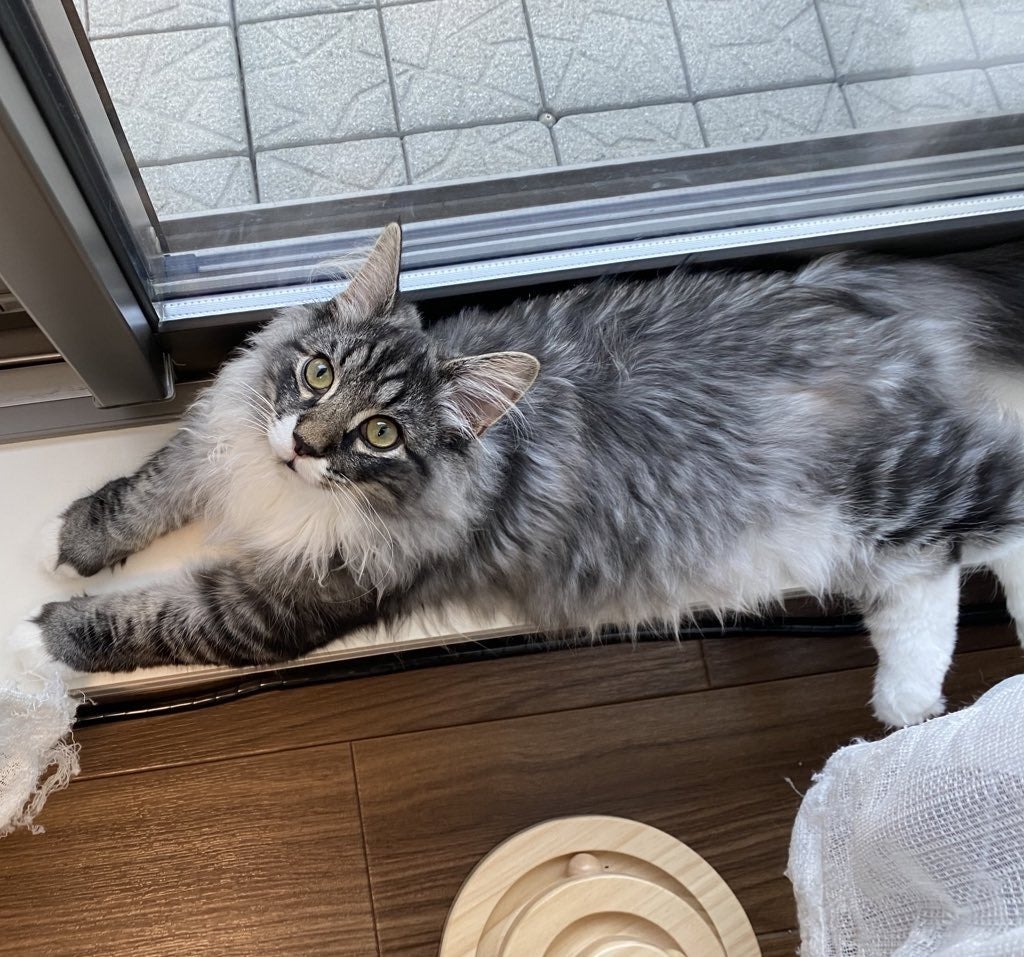 FIPと診断された4/8のぐりは、お腹がパンパンではちきれそうで、お腹をひきずりそうになりながら歩いていました。新薬の投薬が始まるまで、ぐりの目が濁ってきて死に近づいてきているような絶望感や、腹水がしみてぜぇぜぇと苦しそうなぐりをみて、寝て目が覚めたら1人で天国に行ってしまうんじゃないかと、真夜中に泣いて、ぐりの呼吸が止まらないか気になり眠れなかった4月が嘘のようです。投薬が開始されてからは、「絶対に死なせない」「ぐりがおじいちゃんになって、命を全うさせたい」という気持ちだけでやってきました。