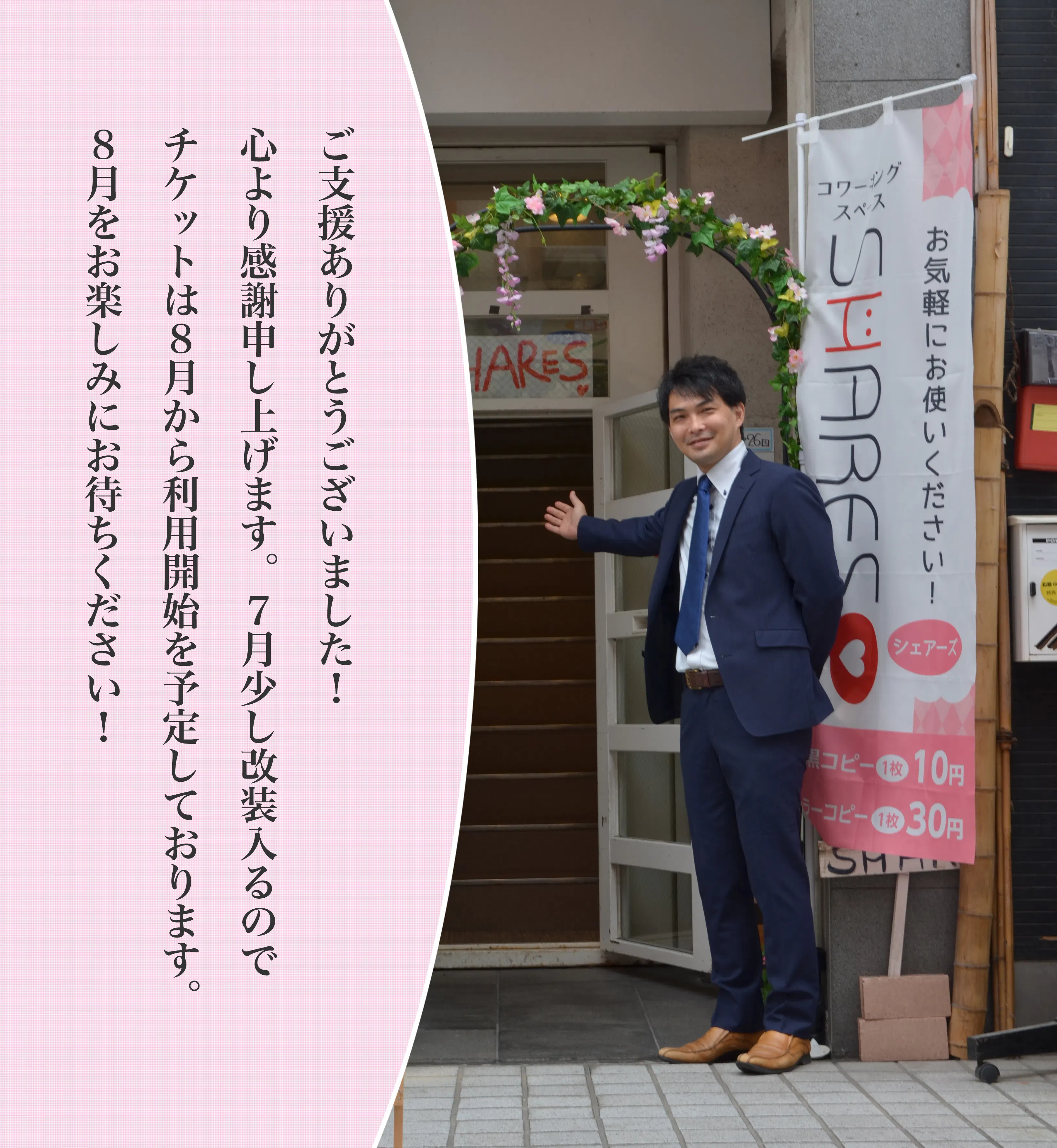 7月中に少し改装が入るので、新SHARESのお披露目を兼ねての無料開放となります。