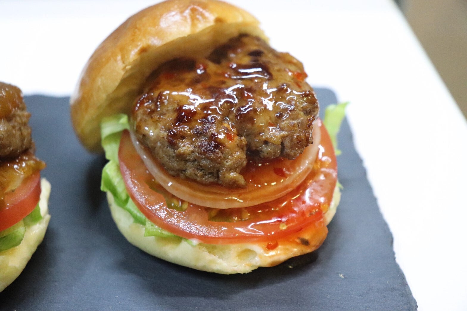 (スライダーという小さいバーガーでもしっかりと肉肉しさを出す為、粗挽きにしております。)