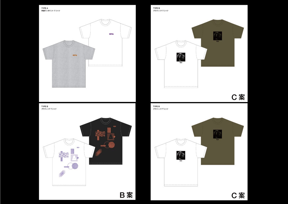 BETAオリジナルデザインTシャツ(4種類),ドリンクチケット、BETA1日スペースレンタル券、BETA1年間期限の入場パスポートなどをリターンとして用意いたします。