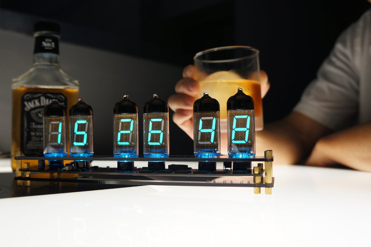レトロだけど未来感のあるVFD管に、LEDによるライトアップ演出を加え、より美しく、よりガジェット感を感じていただけるように設計しました。