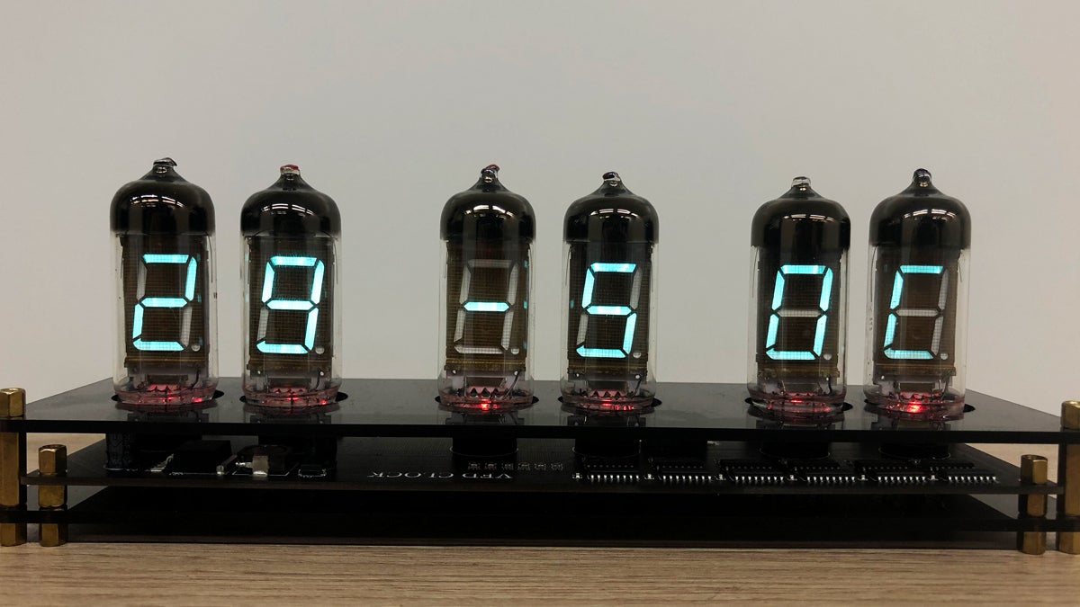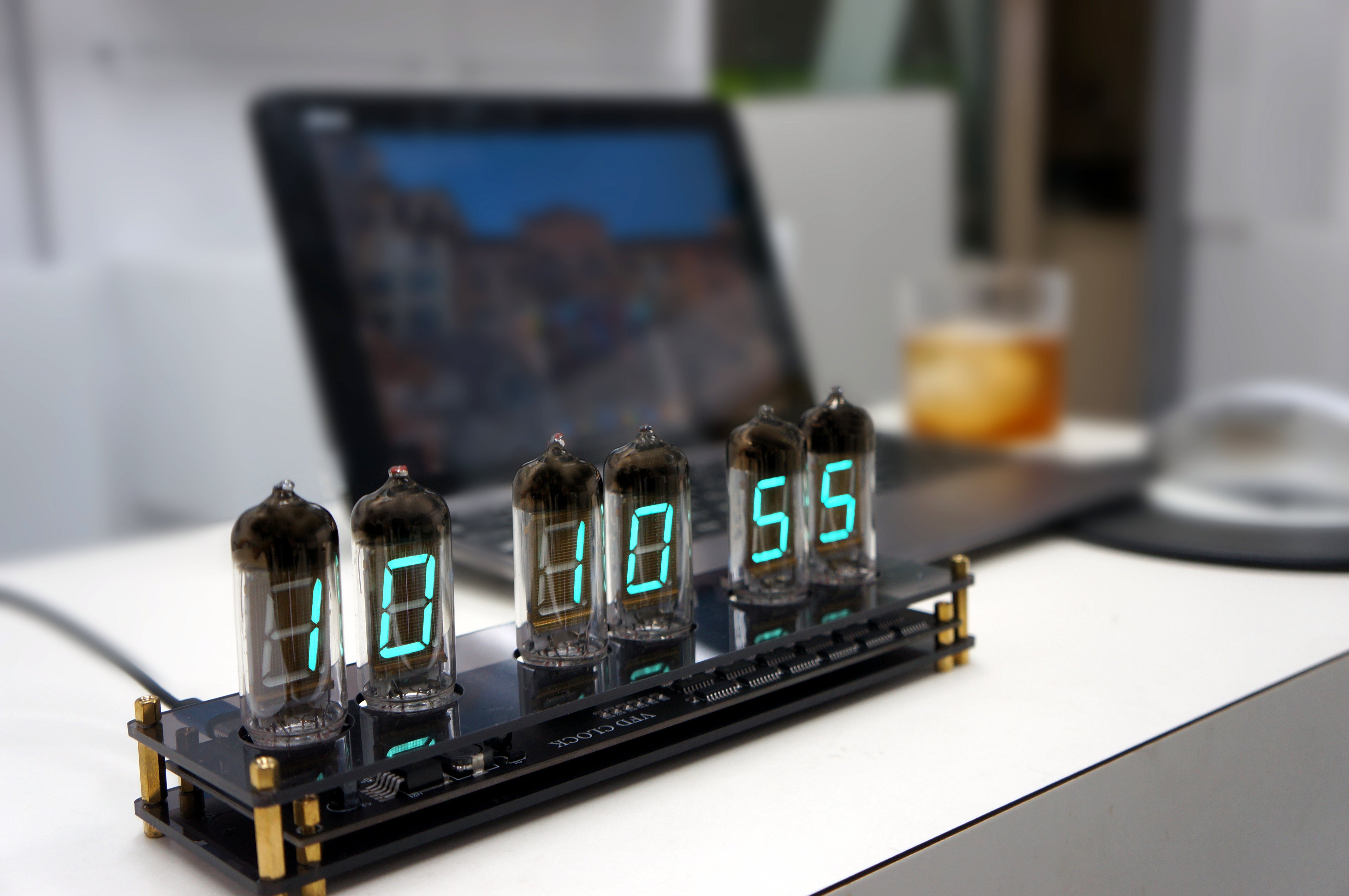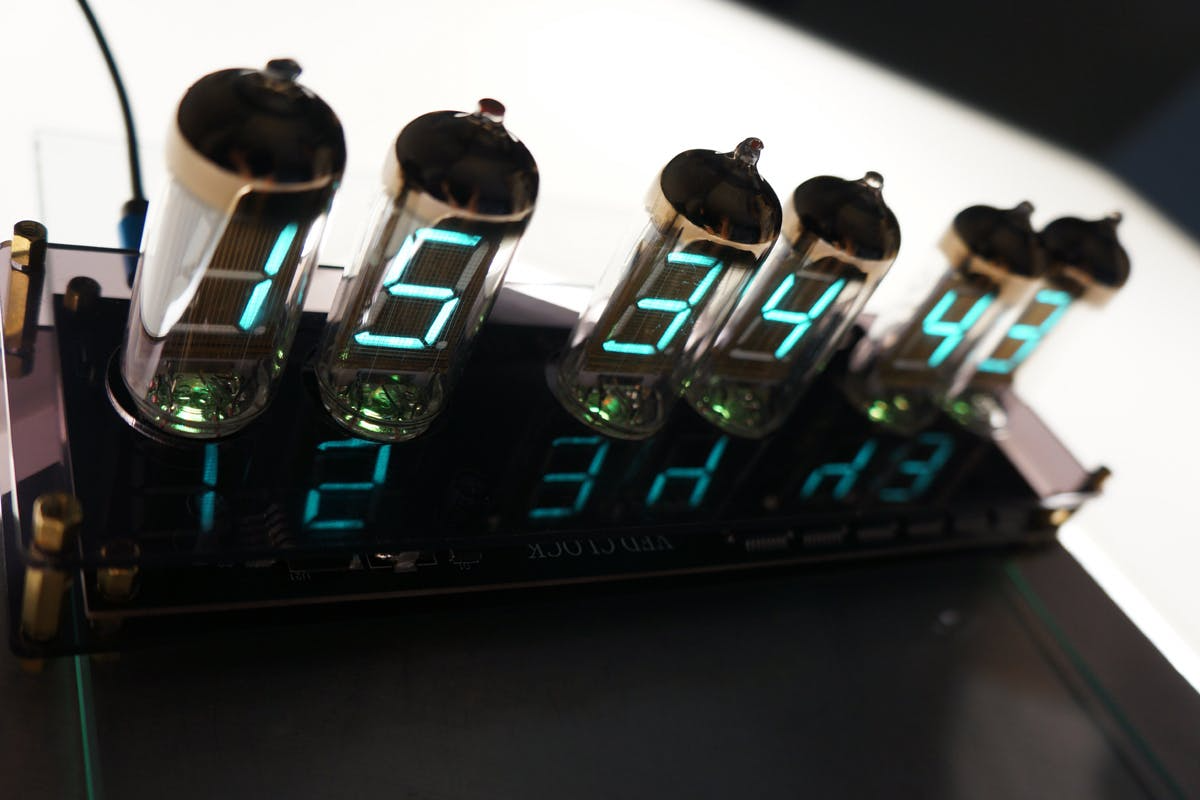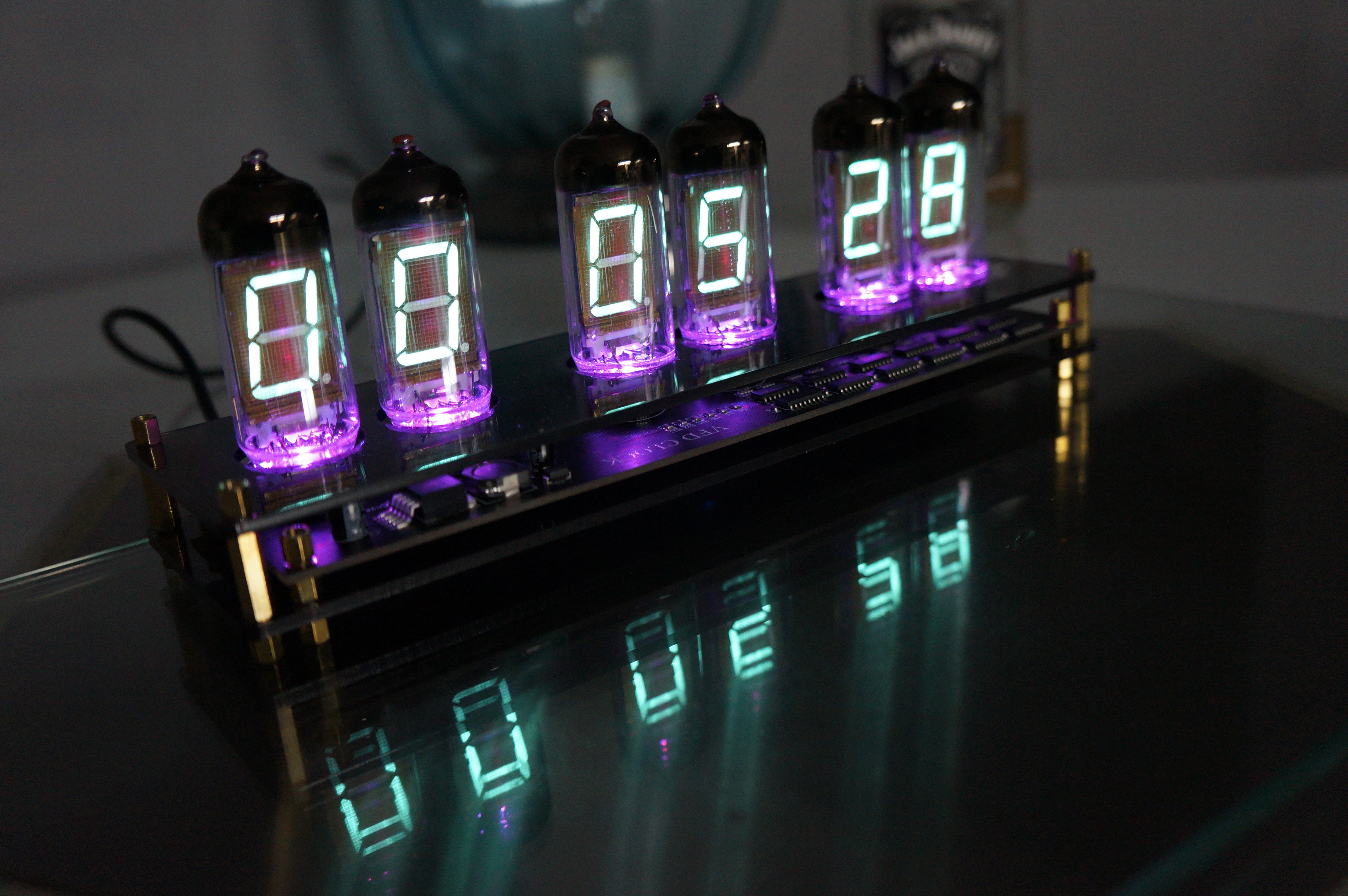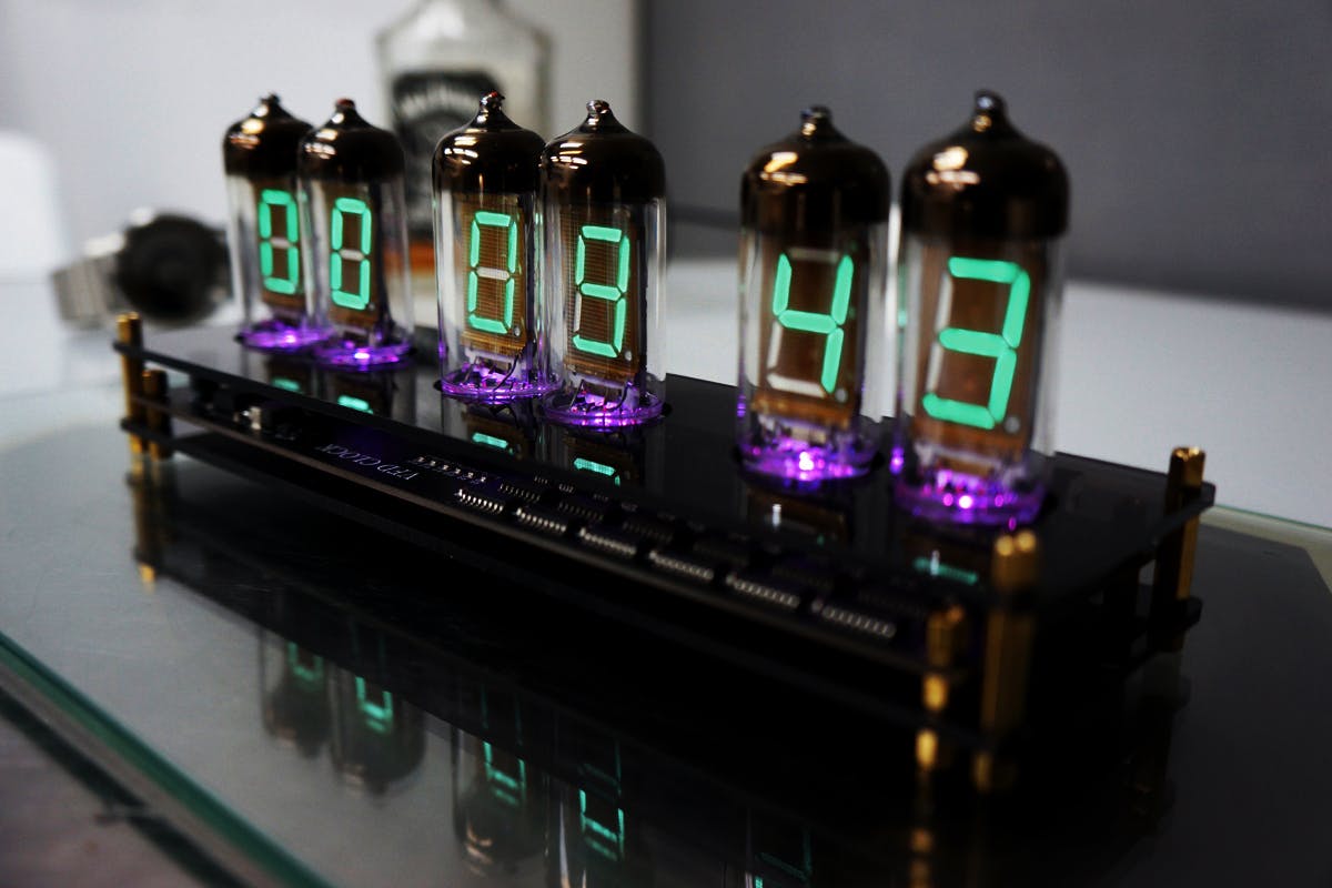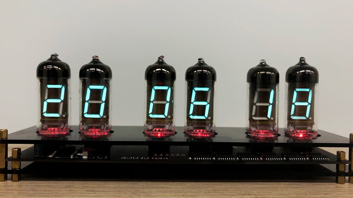 そんなノスタルジーに浸り、そのレトロで美しい光をデスクや自宅に飾りたいという思いからIV11という大きめのVFD管を6個使用したクロックに仕上げました。