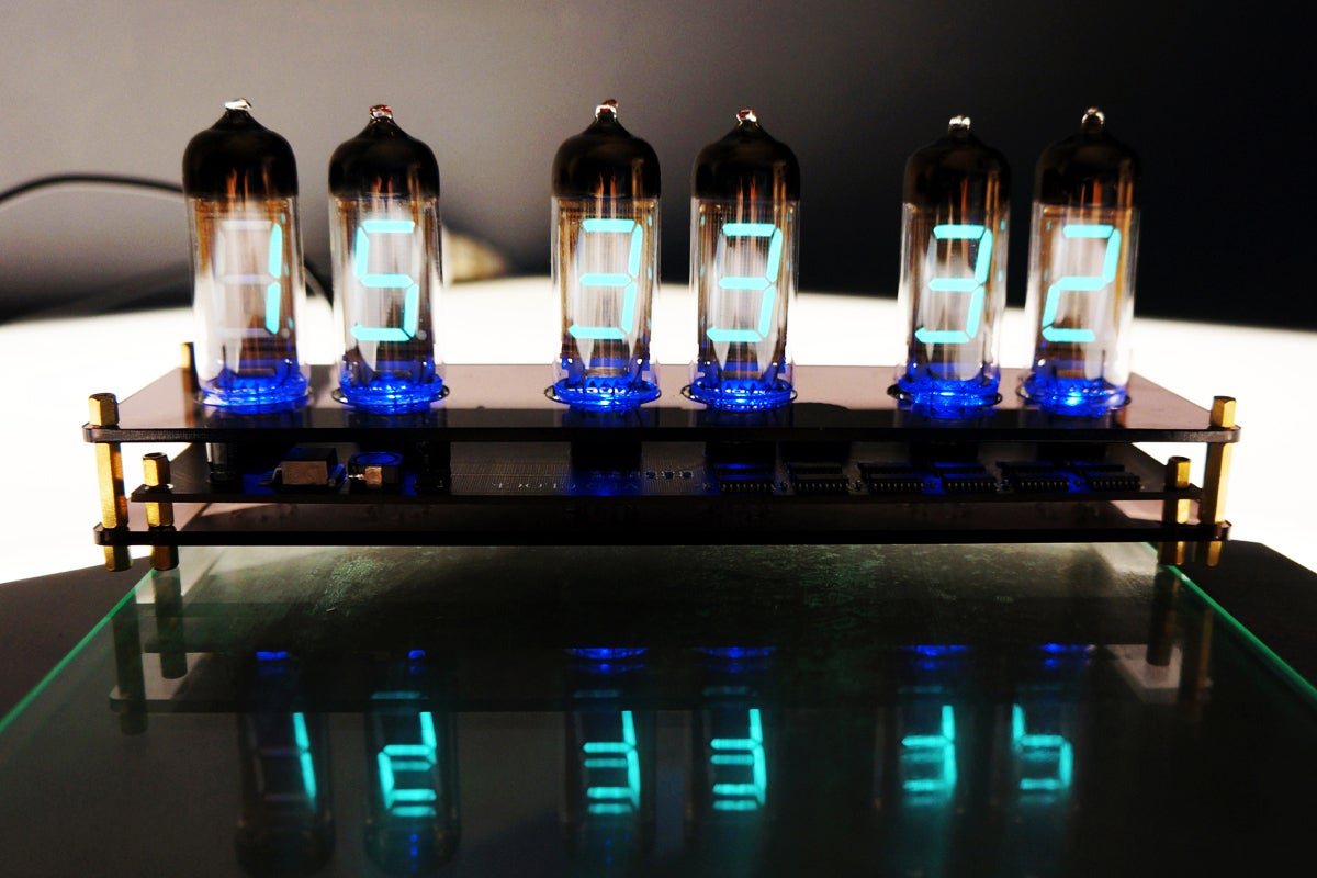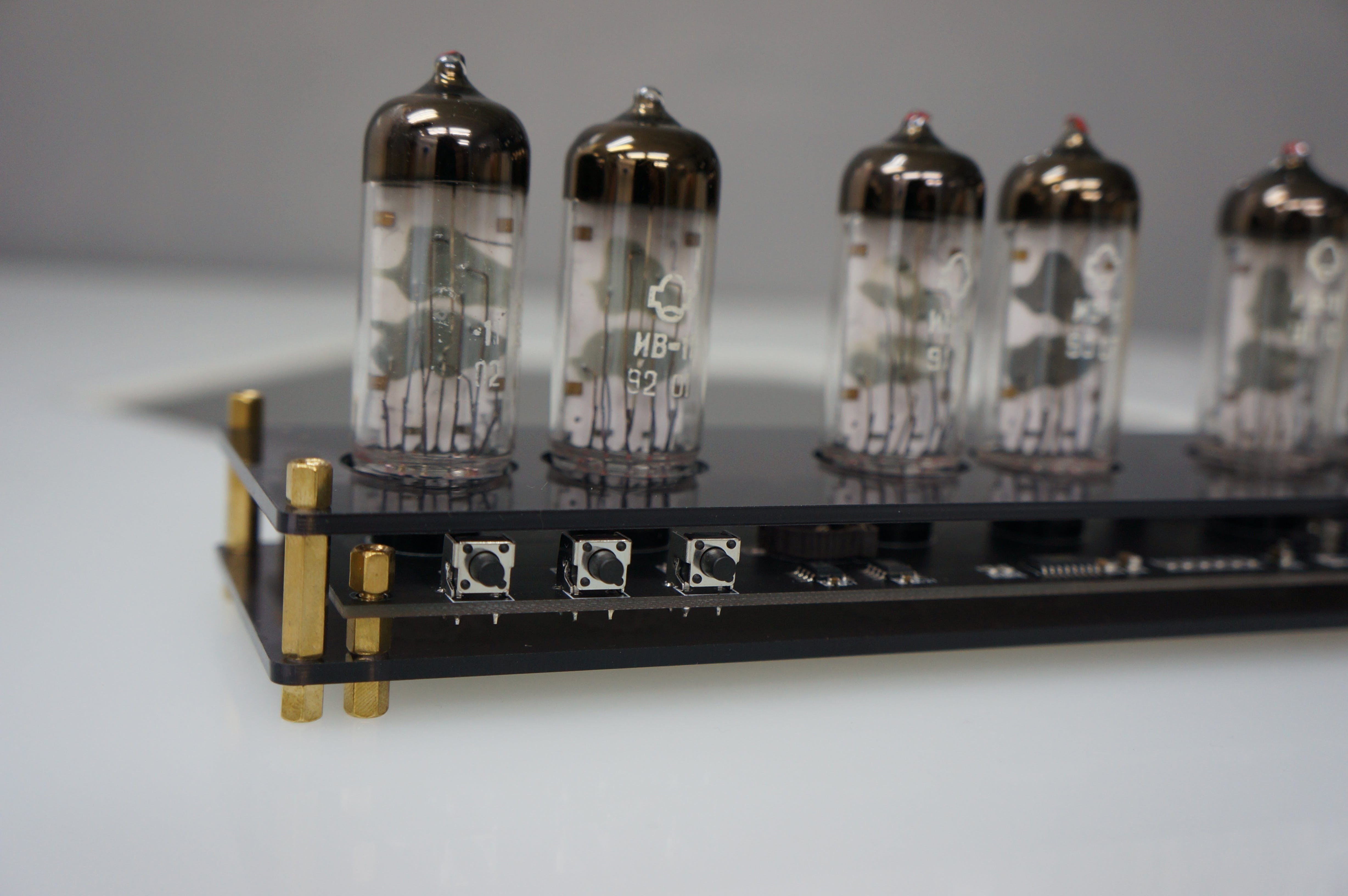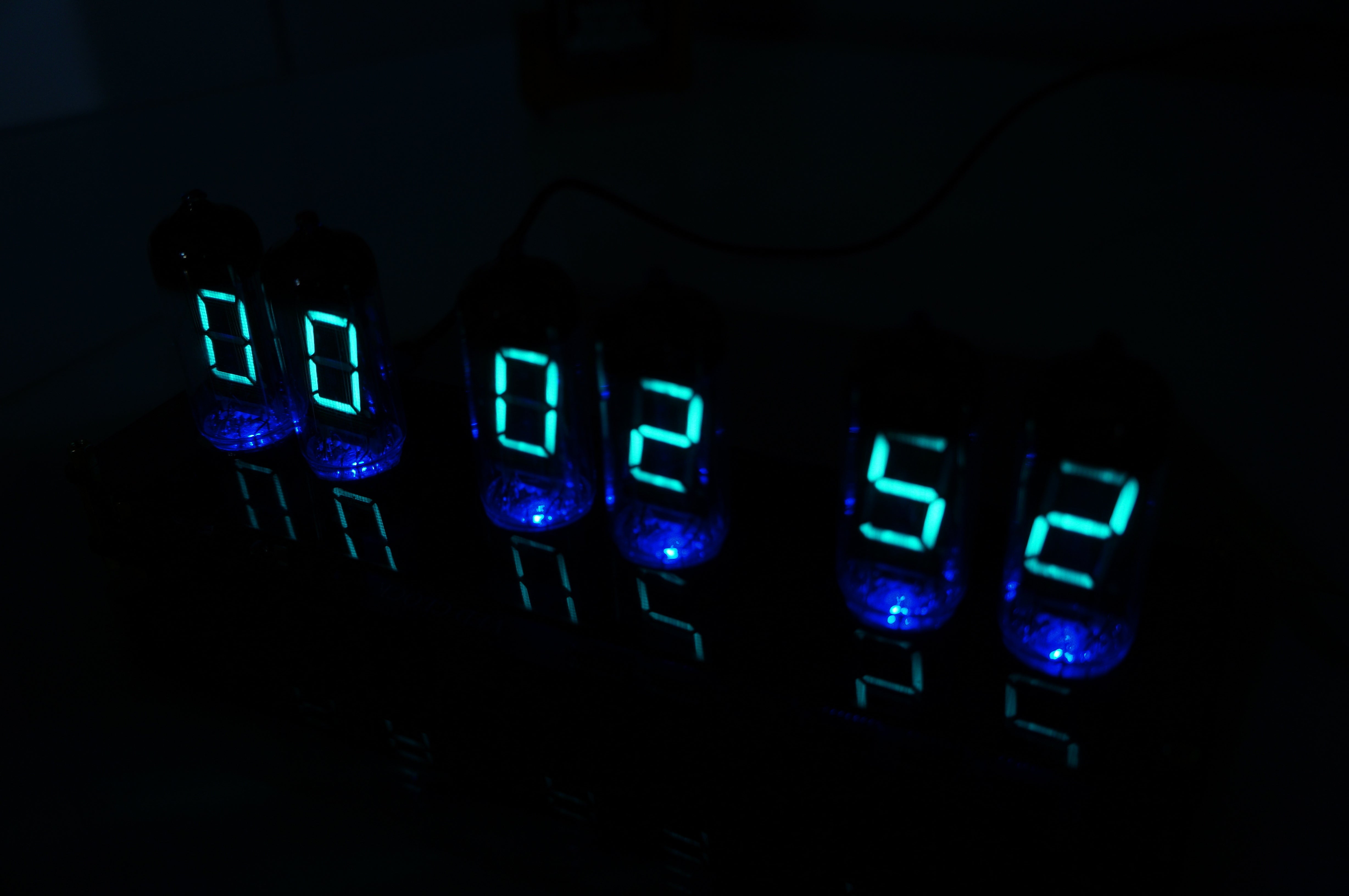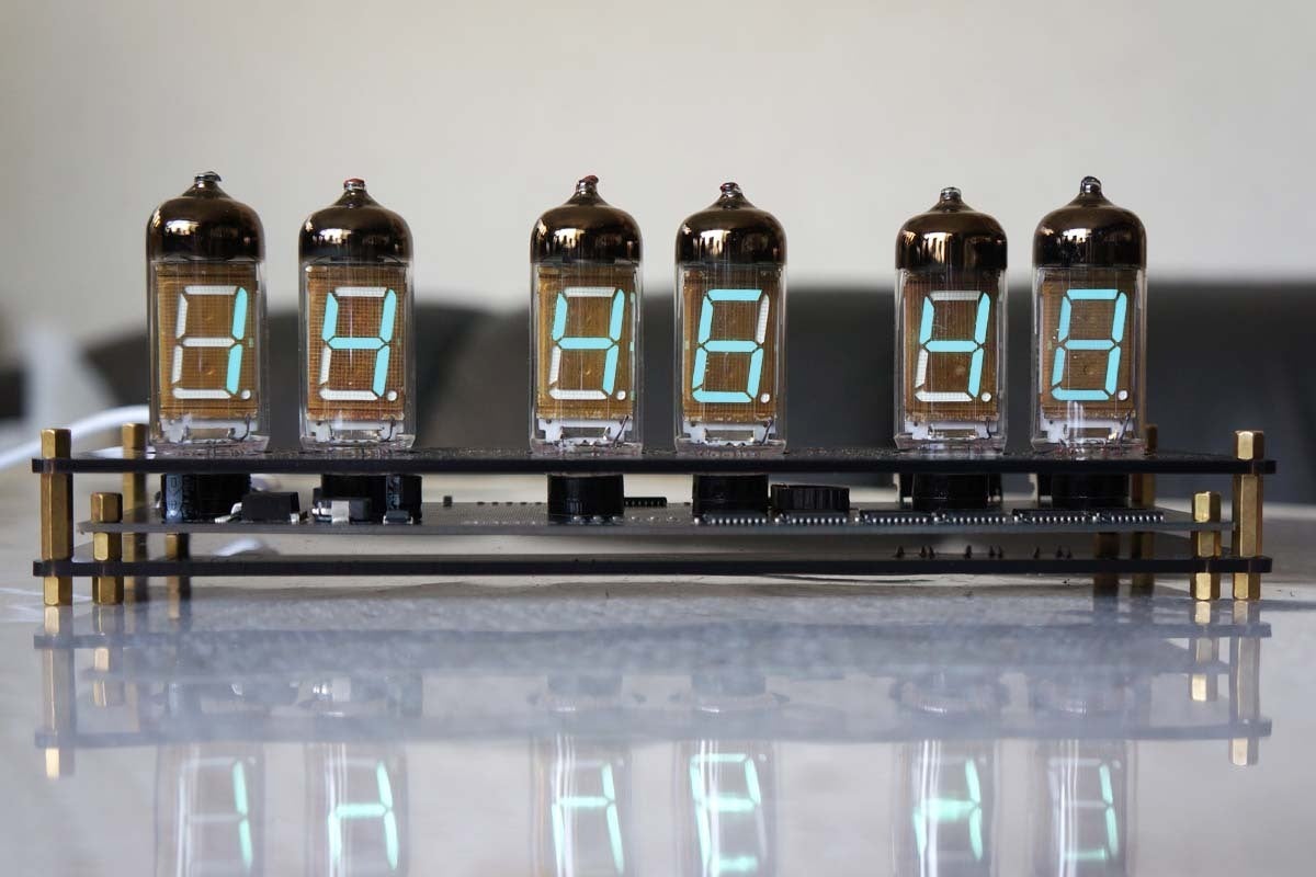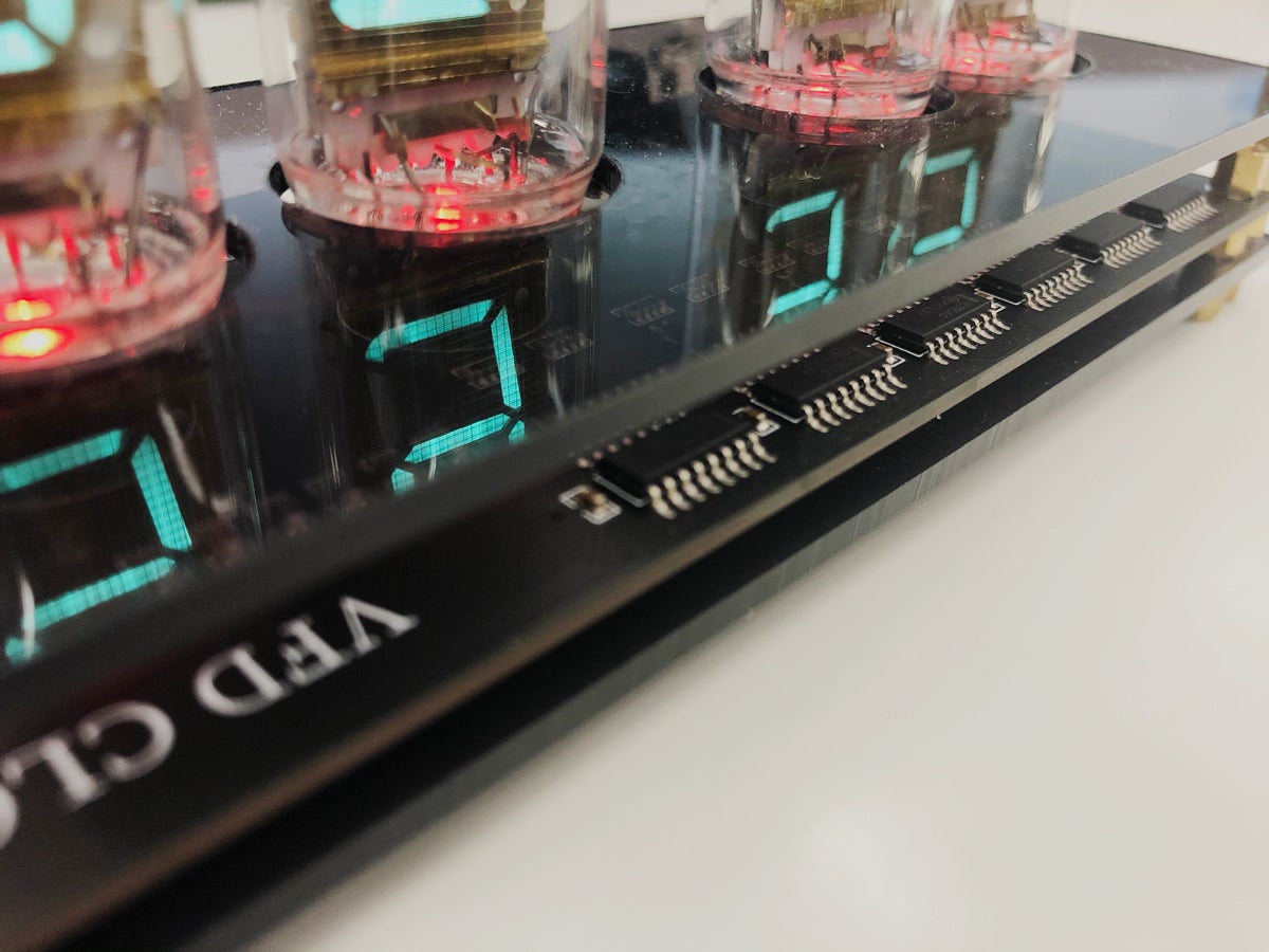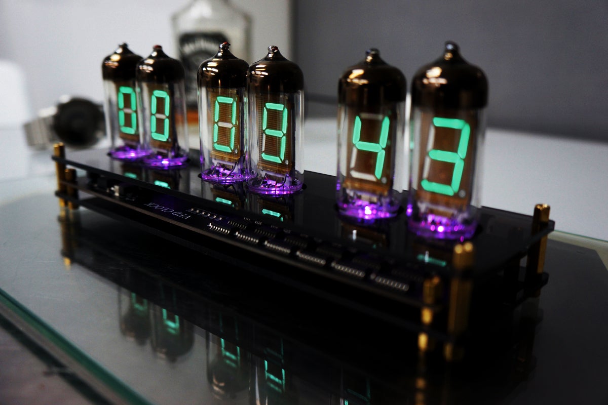そんなノスタルジーに浸り、そのレトロで美しい光をデスクや自宅に飾りたいという思いからIV11という大きめのVFD管を6個使用したクロックに仕上げました。