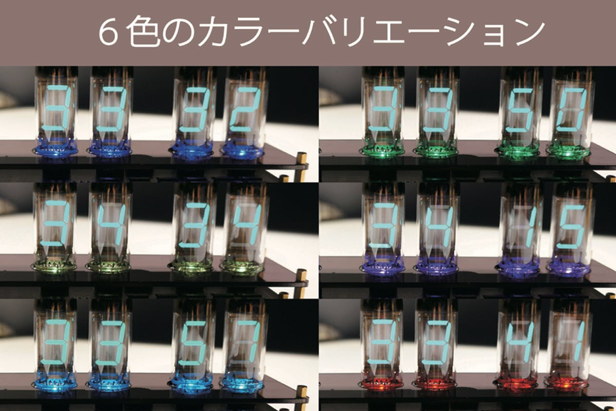 VFD管の下にはLEDを設置してあるため、美しく光るVFD管を6色のLEDのライトアップで演出してくれます。