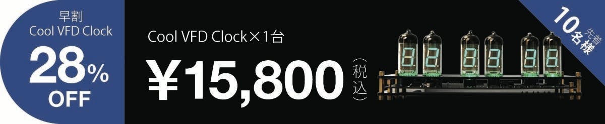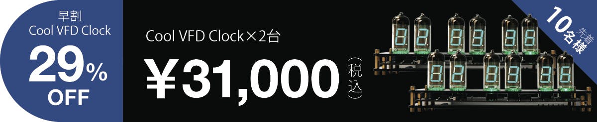 VFD管が登場した頃に、現在のロシア(旧ソ連)にて製造された大型のVFD管( IV11)を採用した、インテリア時計が「Cool VFD Clock」です。