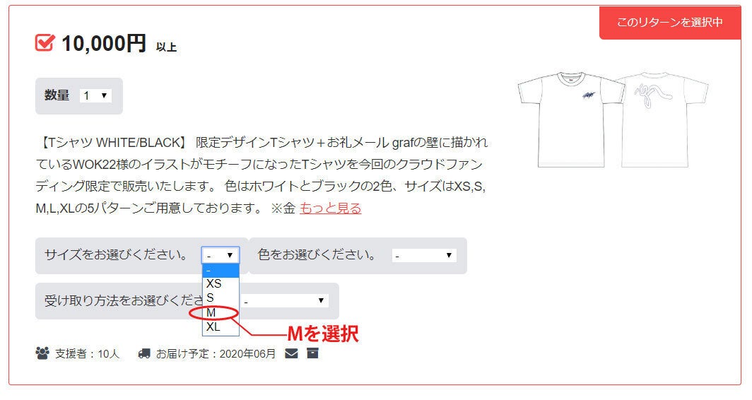10,000円リターン【限定デザインTシャツ】のサイズ「L」が選択肢に表示されないとのご指摘があり、確認したところ、こちらの設定ミスがございました。