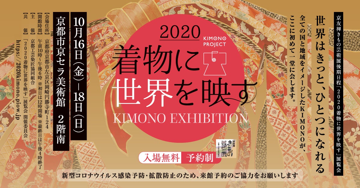 2020/09/22 15:03213のKIMONOすべてが展示される「2020着物に世界を映す」展覧会が開催決定しました。全てのKIMONOが一斉に展示されるのは初めてであり、それも、リニューアルしたばかりの「京都市京セラ美術館」の2階南回廊をKIMONOが埋め尽くします。10月16日(金)12:00~18:0010月17日(土)10:00~18:0010月18日(日)10:00~16:00※入館はいずれも終了の30分前まで※入場無料・予約制になります※初日の午前中は来賓およびメディア限定公開となります。◆展覧会特設ホームページはこちら◆予約専用ページはこちら(前日まで電話予約も受け付けていただけます。予約専用電話:075-761-0239)催事名は「京友禅きもの芸術展」です。なお14日、15日にKIMONO213点の展示ではございません。16日~18日を選び、お時間を指定ください。◆メディア各社の取材申し込みは、特設ホームページの下部にございます。ーーー新型コロナウイルスの感染状況が少し落ち着いたことで開催決定し一同喜んでおりますが、事前予約やマスク着用など、御来場いただく皆様のご協力あっての開催となります。何卒宜しくお願い致します。全国の卓越した技術を持つ制作者が、各自の限界を超え、その国の平和と繁栄を願いながら制作したKIMONOの持つ力は写真では伝わり切らないものです。それが213ヶ国、つまり振袖と帯が各213点、総数426点展示され、「世界はきっと、ひとつになれる」というメッセージが発信できる素晴らしい空間となることを、私どもも楽しみにしております。※予約情報は美術館が保持するものなので、主催者および私どもには伝わりません。もしよろしければevent.kimono@piow.jpにもご一報いただけますと幸いです。※スポンサー、制作者には初日午前中にもご来場いただける「特別入場券」を代表者の方にお送りしています。ご興味のある関係者の方は、代表者かKIMONOプロジェクト事務局あてにお知らせください。KIMONOプロジェクト事務局 清水event.kimono@piow.jp・ もっと見る