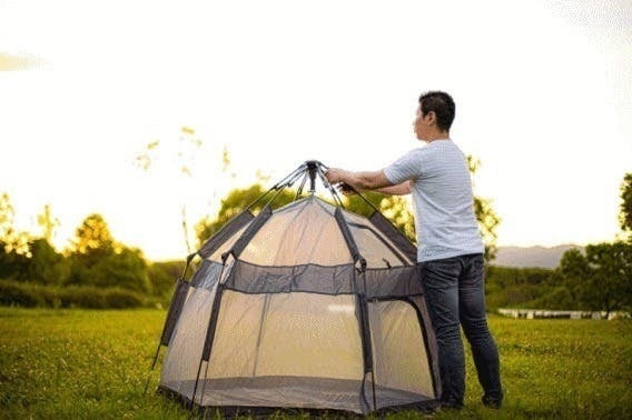 一瞬で目の前に現れるテントに喜ぶ子供の笑顔を見ながら快適な時間をお過ごしください。