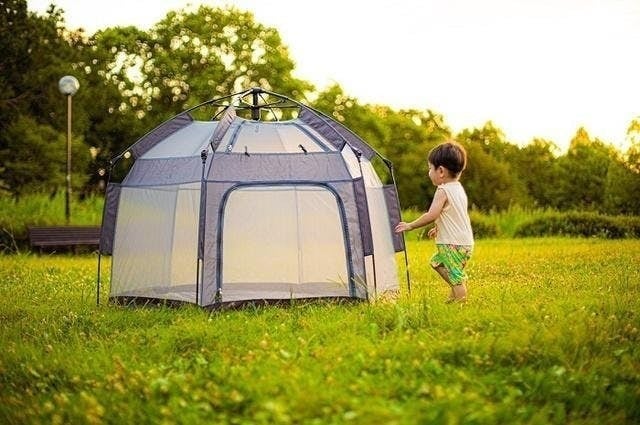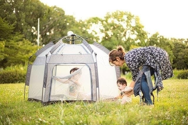 このテント、元々は安全なベビーサークルとして開発されたそうです。だからどの角度から見ても中の様子を一目で確認できる設計になっているんですね。