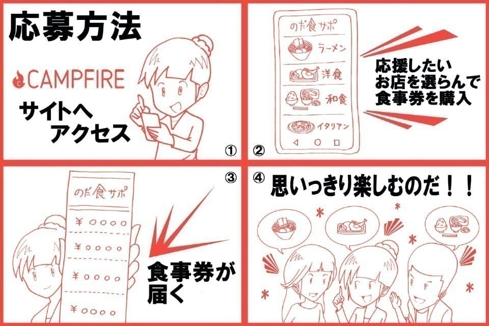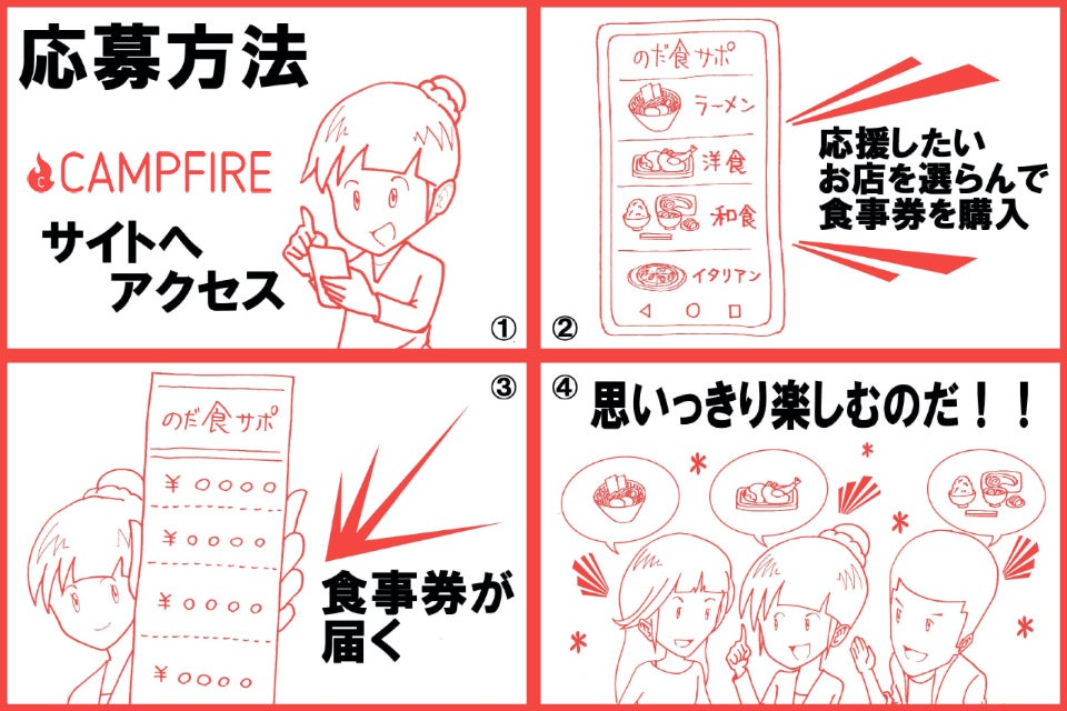 ※「食事券購入なし」の支援(野田市の飲食店参加店舗全体の応援)は、食事券のご提供はありません。