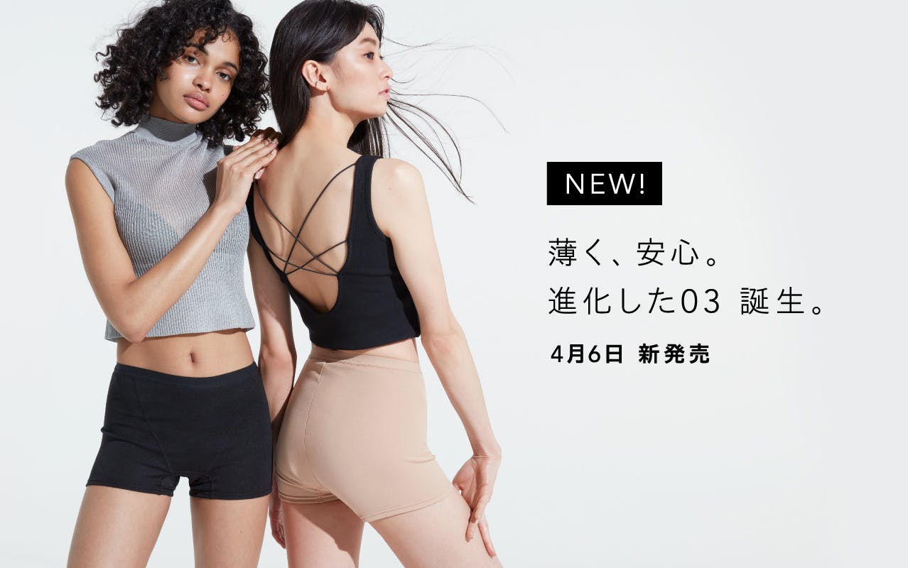 最新モデル03では吸水量を増やし、約125ml*もの液体を吸水するショーツへと進化。