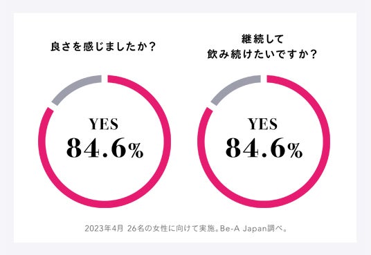 また、ベア ザ・サプリメント Feを飲んで、「良さを感じた、飲み続けたい」と回答した人は、84.6%に上りました。