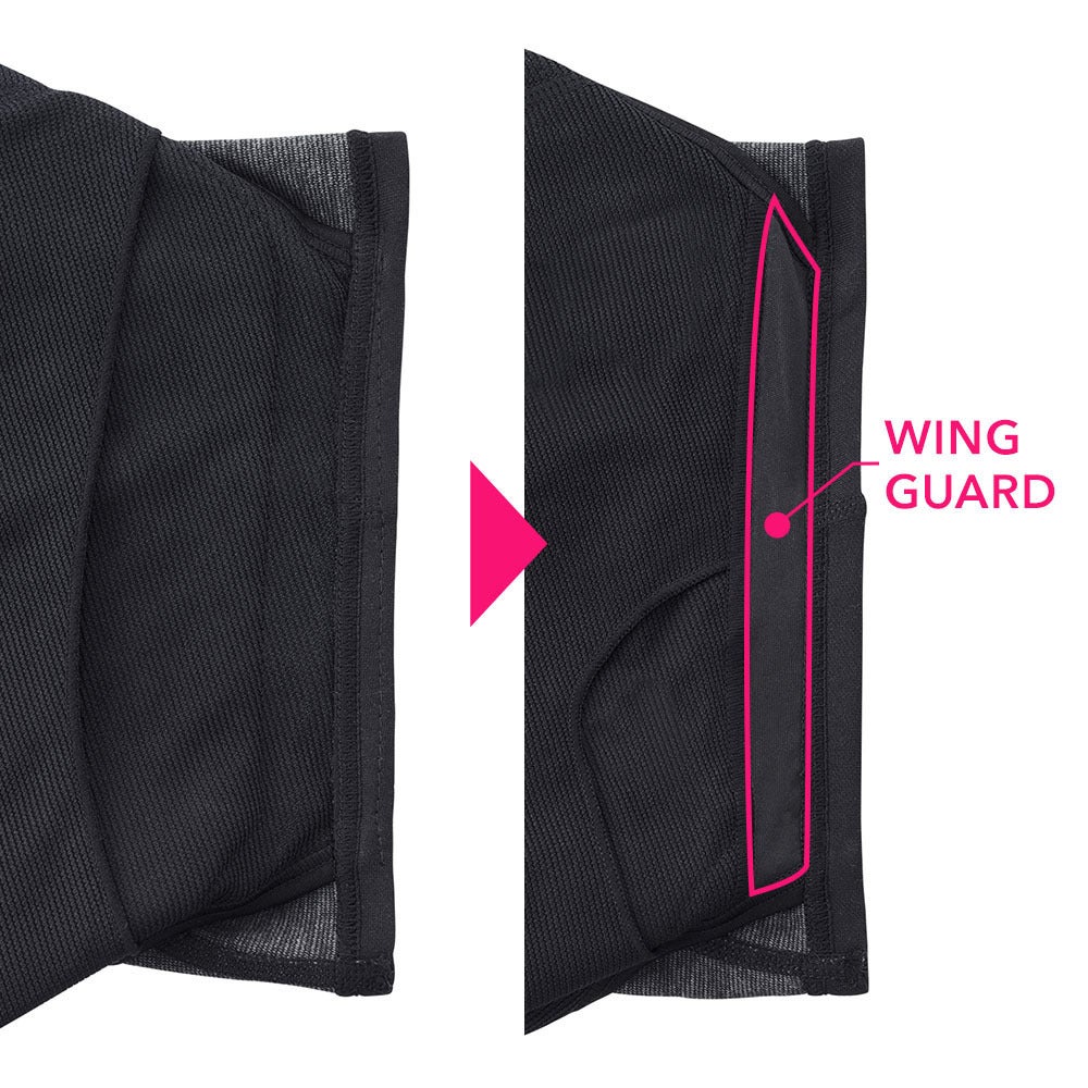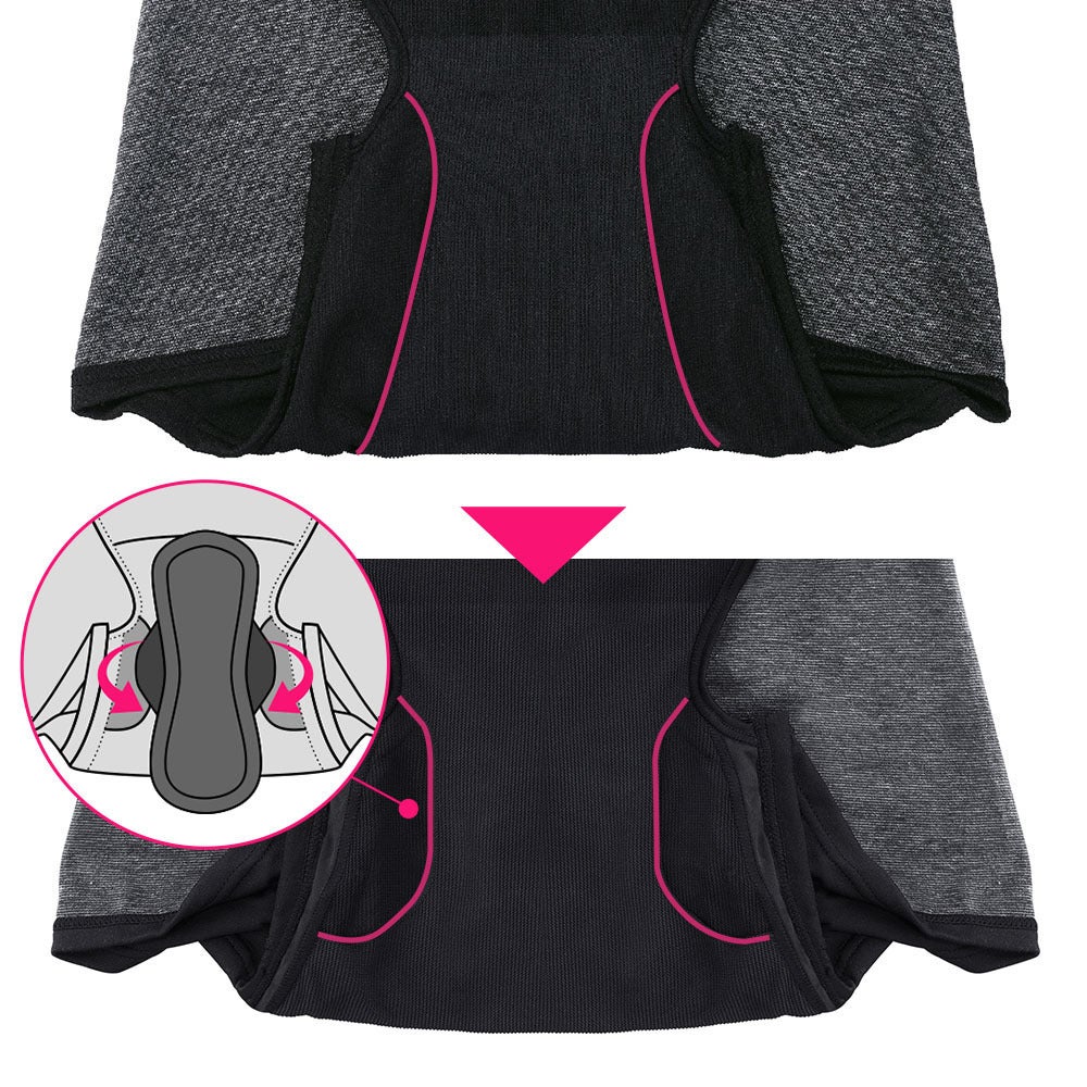 ■ウィングポケットはサニタリーアイテムの羽をしまいやすい形状に。多い日に併用する場合にもズレずに快適。
