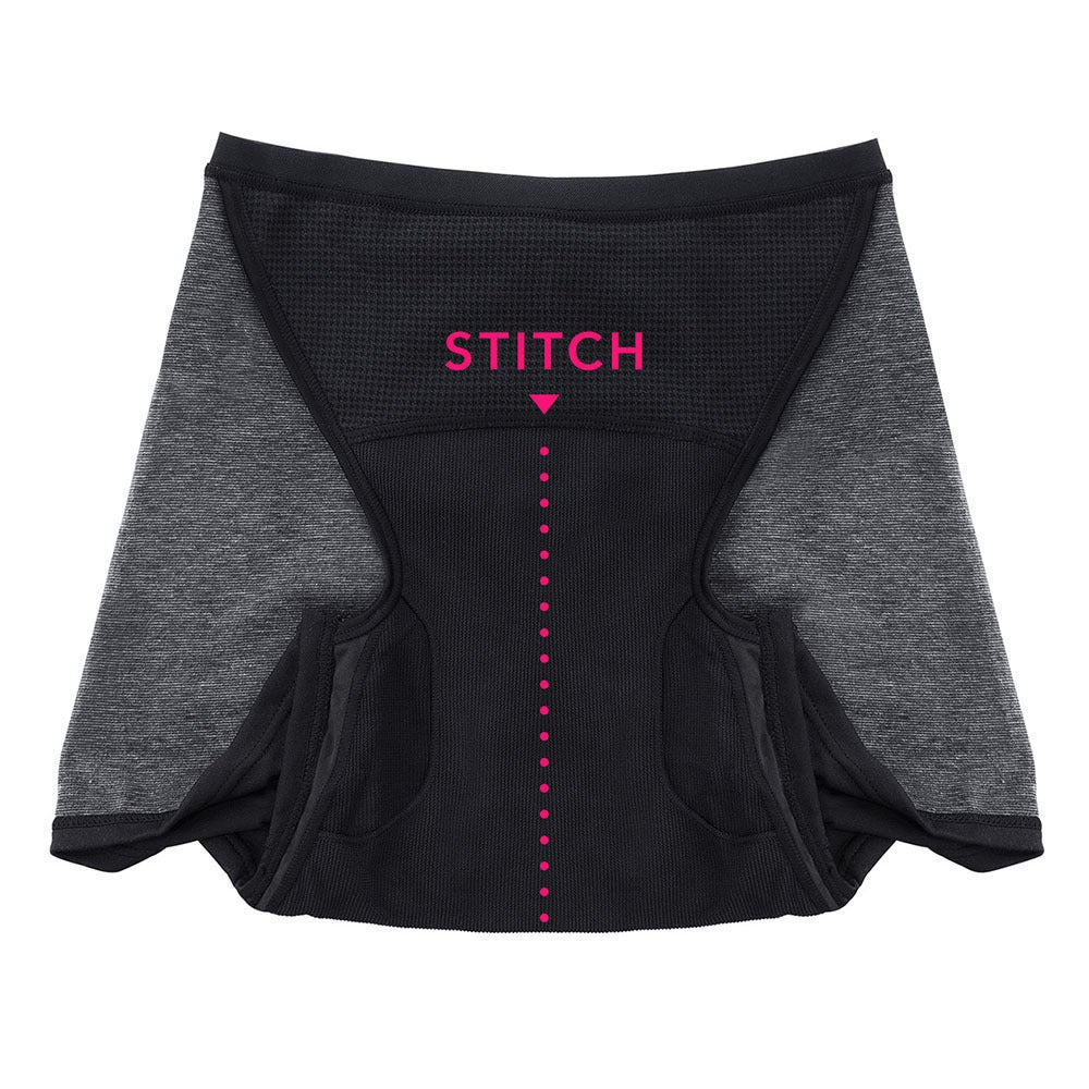 ■吸収体の2・3層目に、前から後ろにかけて1本の隠れステッチを。液体を素早く中央へ集めるからドッと出にも安心。