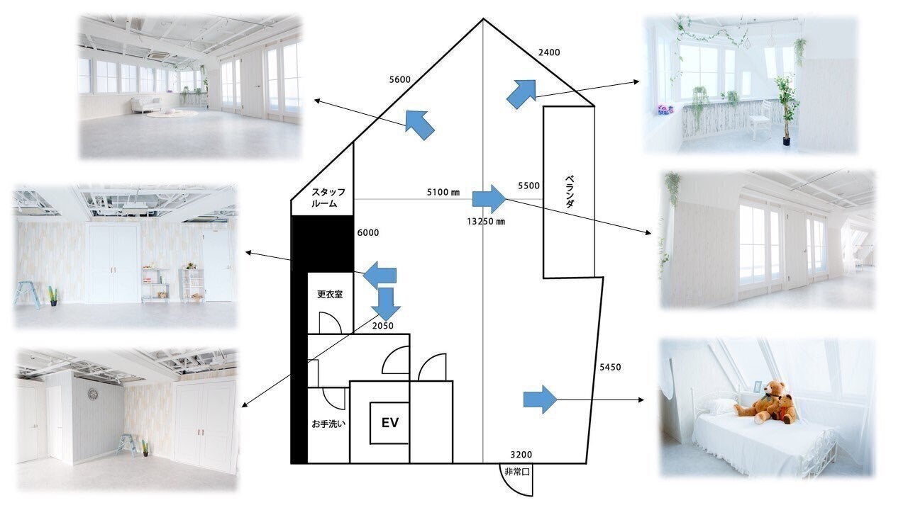 12階建てビルの最上階にあり、窓も多く、自然光のたっぷり入る白を基調としたスタジオになります。