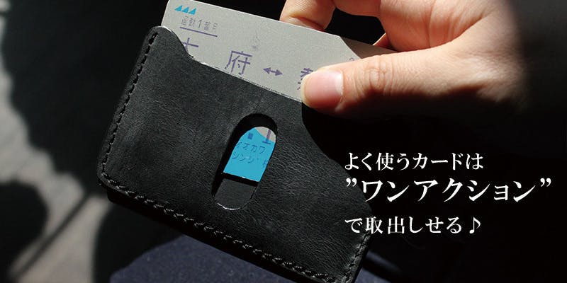 ②主に支払いに使うクレジットカードや、IC定期券など、よく使うカード2枚はワンアクションですぐに取り出しできる背面ポケットに!