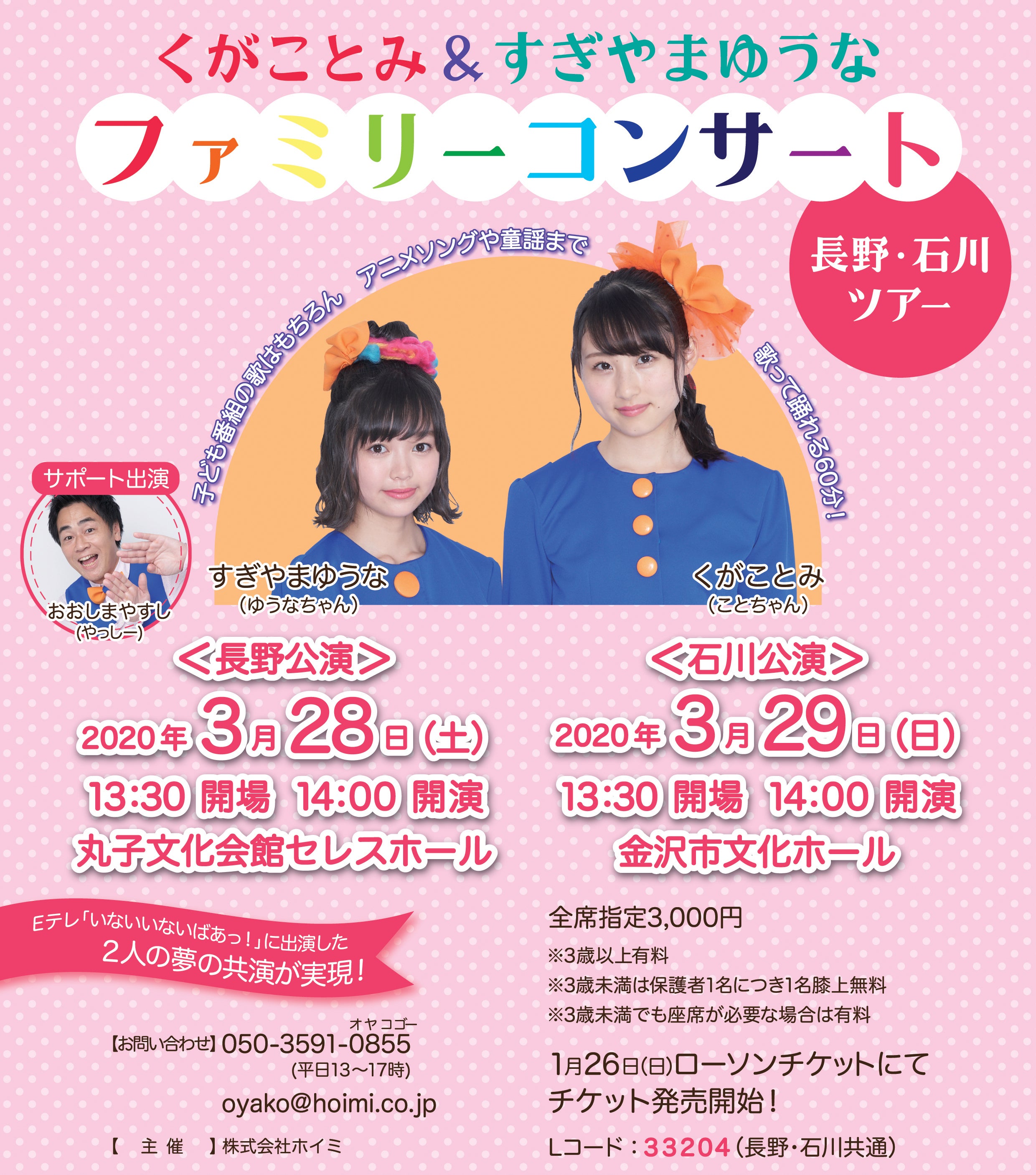 ①3/28、29『くがことみ&すぎやまゆうなファミリーコンサート』(長野県、石川県)