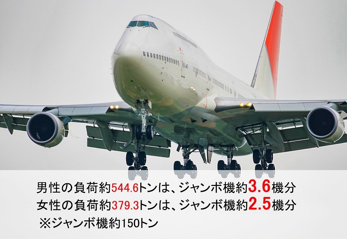1日に平均、成人男性は両足にのべ約544.6トン、成人女性は約379.3トンもの負荷がかかっており、負荷を減らす解決策が衝撃吸収力の高いインソールです。