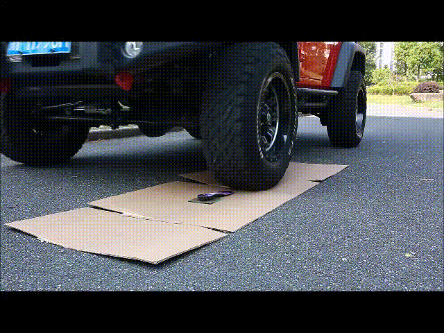 MAGIC 1を車のタイヤでつぶしても、すぐに元の形状に戻りました。