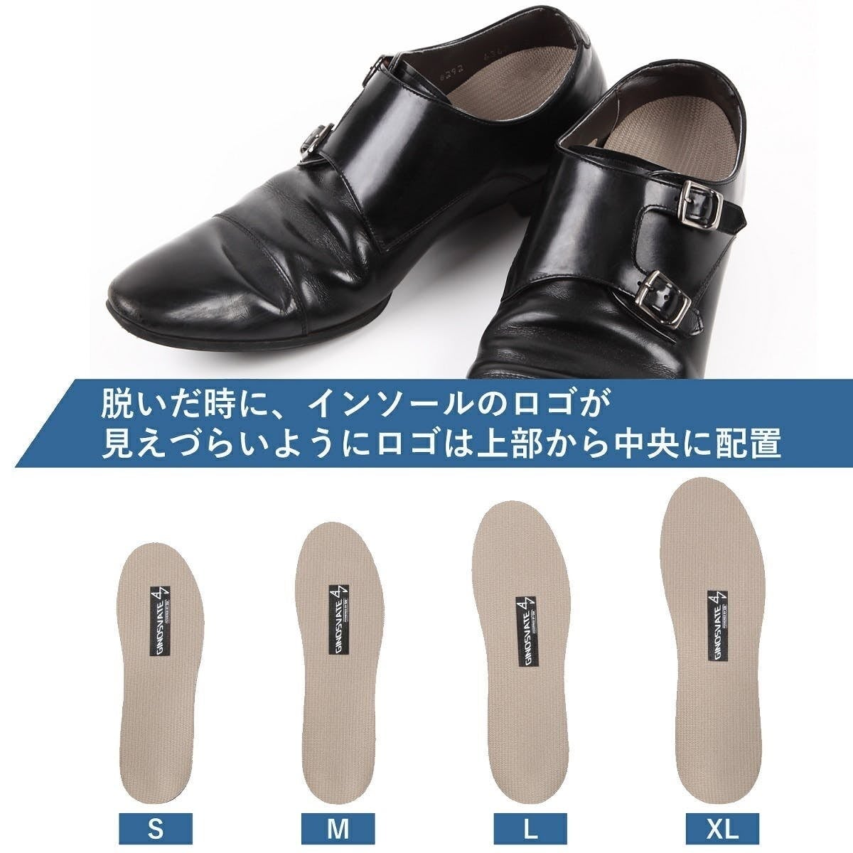 ロゴの面を上にして、靴に入れます。
