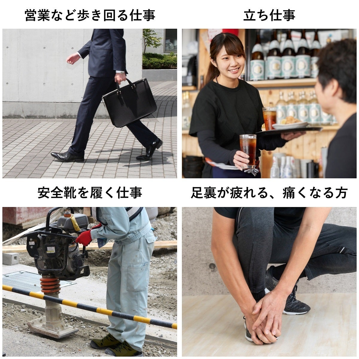 長時間、立ち続けたり、歩き続けたり、合わない靴を使用したりすると、私たちは足の疲労、時には痛みを感じます。私たちの足は、使っている時、常に負荷がかかっています。