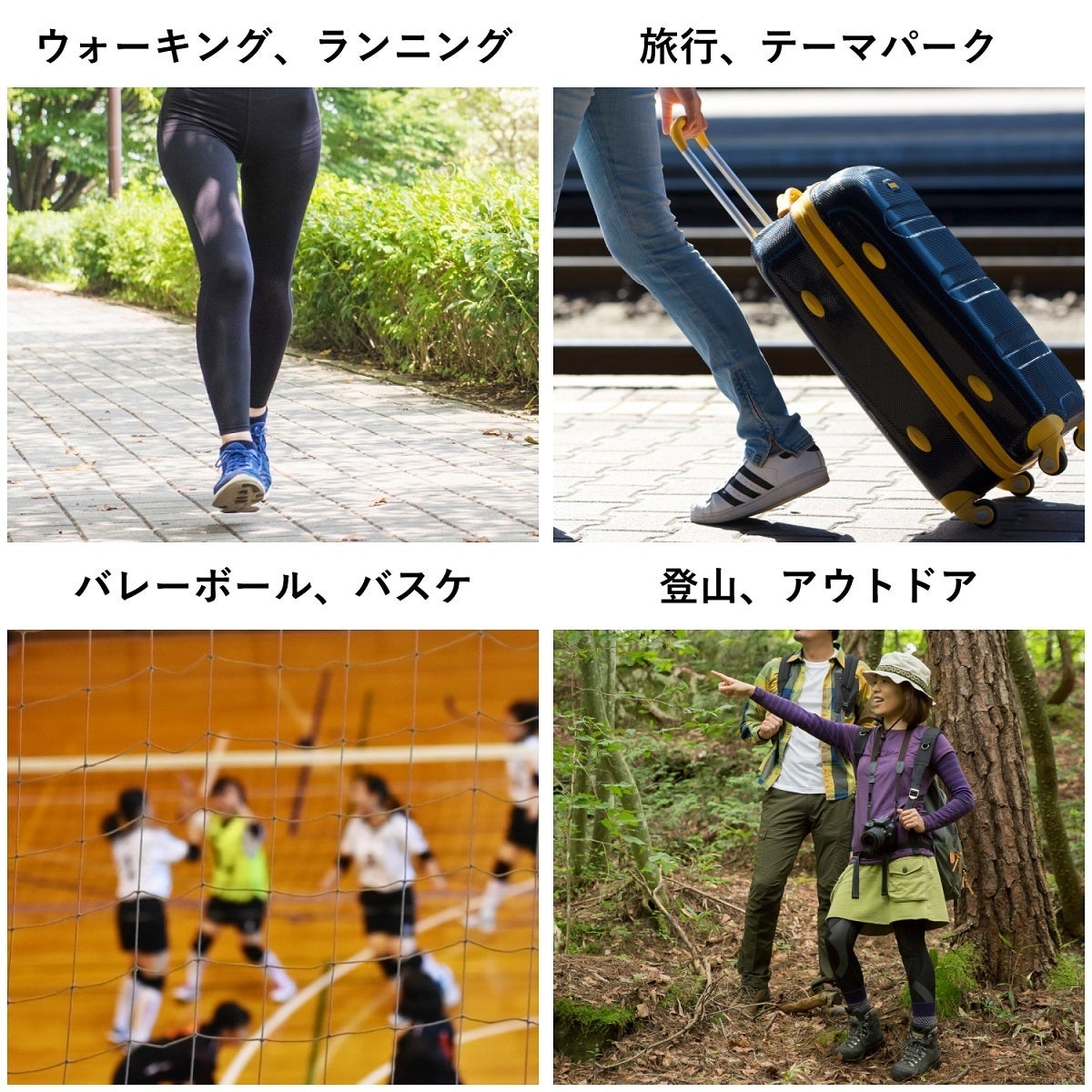 普段より、長時間、歩いたり、ジャンプなど足に負担がかかるスポーツにも、ぴったりです。
