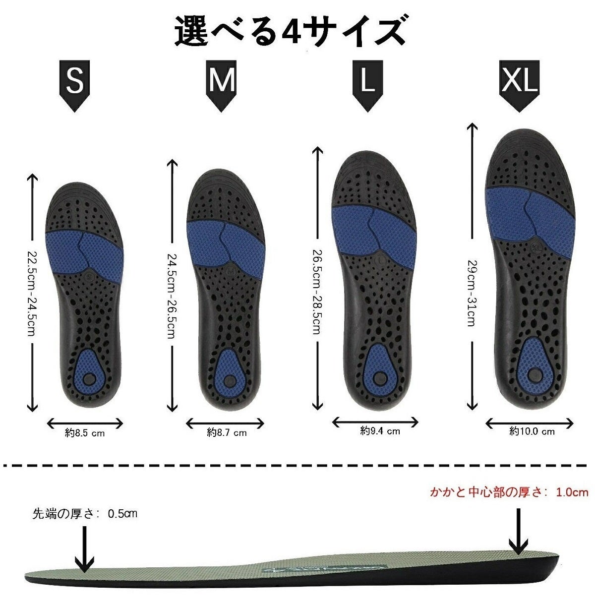 1cmは、日本のインソールの市場を調べ、需要がある最大の厚さです。