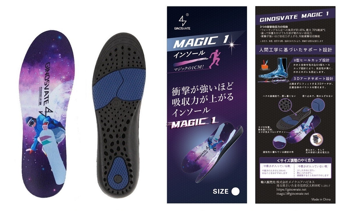 インソールの開発経験15年のノウハウにより、日本限定デザインをはじめ、日本人が気になる細かい点も、MAGIC 1に反映させ、実用的な商品になりました。