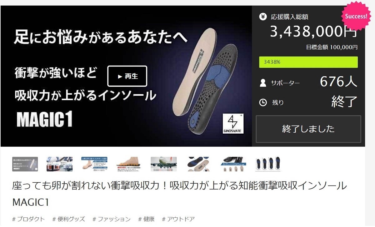 のべ970人以上が支援しているインソールMAGIC 1