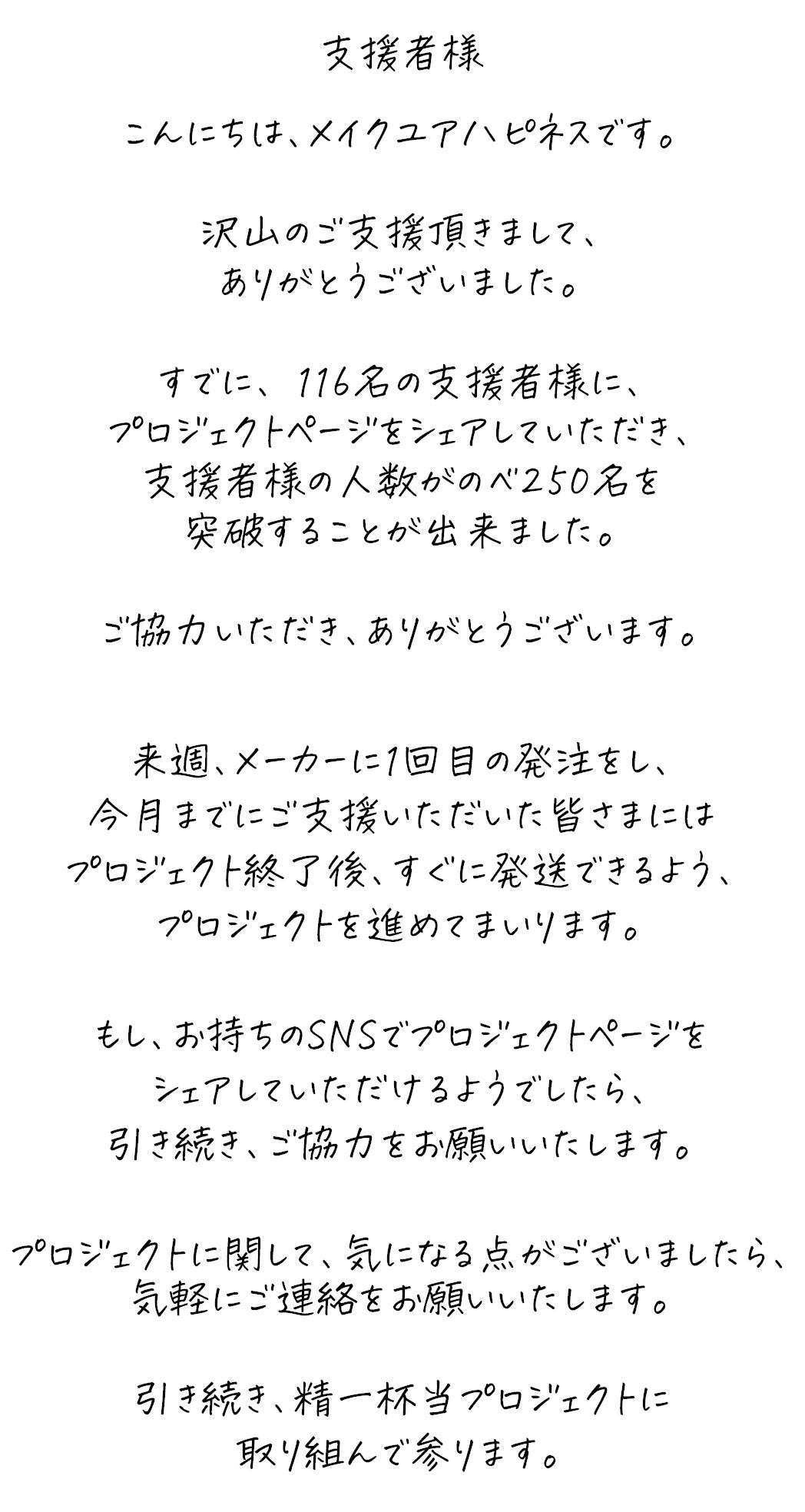 画像の方が、気持ちが伝わりそうなので、感謝の気持ちと今後のスケジュールを画像にしました。