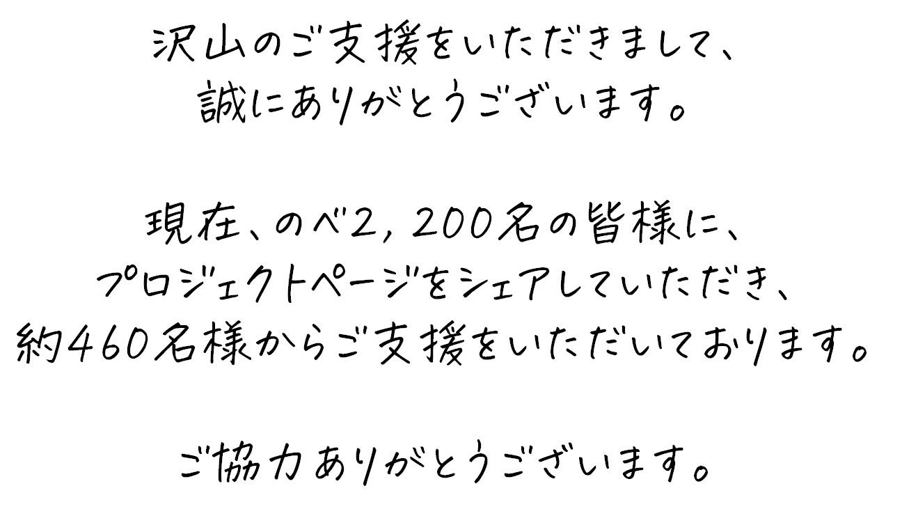 ※現在、「発注数 > 支援数」のため、皆様にすぐに商品を発送できる予定です