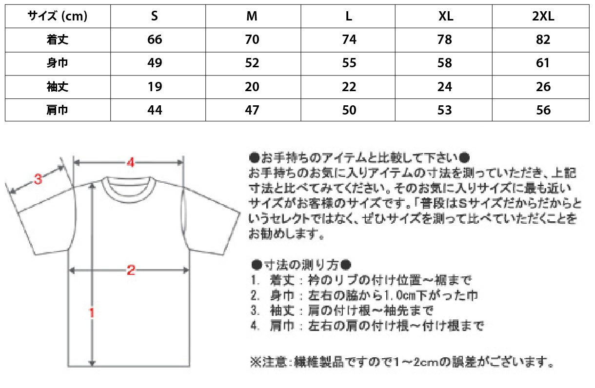 リターンTシャツのサイズ表をUPしました。