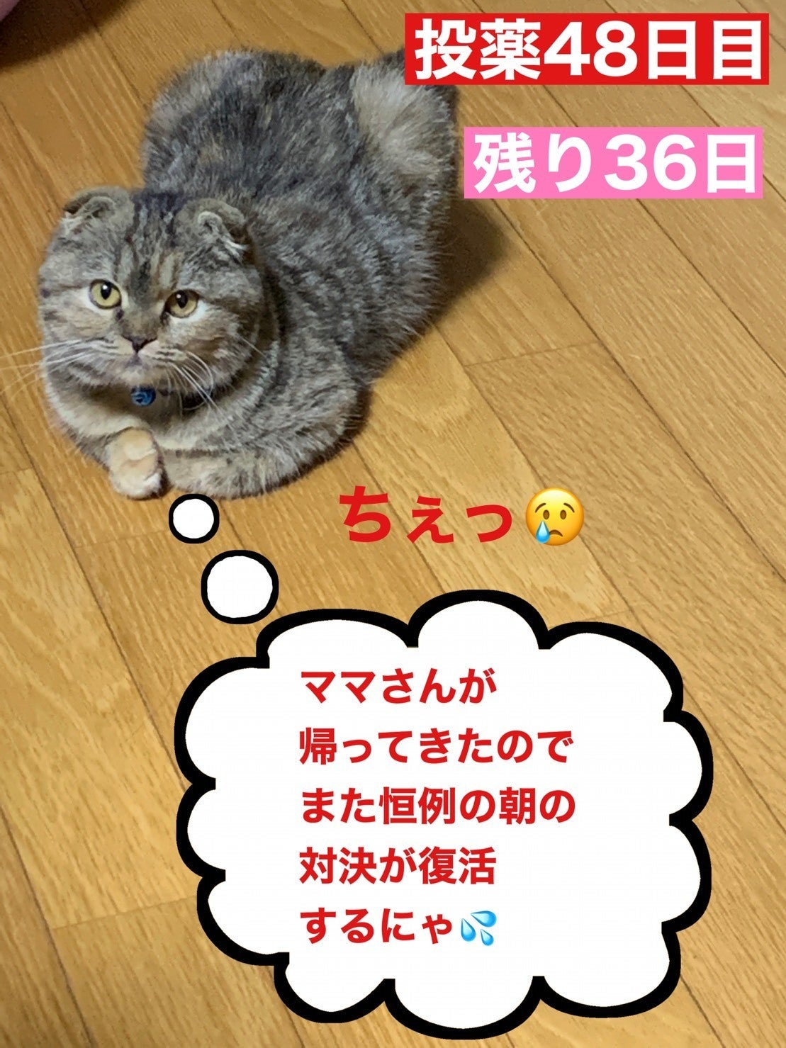 こんばんは☆ココちゃん家のココママです。こうして投薬報告出来るのも今日が最後なのかな・・・。と思うと本当に寂しいです!!が!!先ほどもメール等ではご案内しましたが、公式ライン「ココちゃん家」を開設いたしました。早速、本当に沢山の方にご登録頂いております。変わらず、この先も投薬の様子、闘病の様子もお伝え出来ますので是非、ご登録よろしくお願い致します^^さて、ここでの投薬報告は本日で最後になってしまうのかと思いますが・・・ココちゃんの投薬・・・変わらずパパさんと二人三脚です!!体重は、正確には1.96キロ投薬量は300ミリ、2キロになったら350ミリになります!顔!!!最終日なんだから・・・!!とツッコみたくなるお顔ですね><あっ・・・。だめです。どのアングルからでも・・・顔・・・><最終日も見せてくれましたね^^変顔クイーンココちゃんです☆あと・・・数時間で終わってしまうこのプロジェクトですが、最近は、ココちゃんのみならず、ココちゃん家の個性豊かなファミリーを好きになってくれる方が多く、パパさん、ママさんも嬉しいです^^ここでは、動画はユーチューブしか載せられなかったのですが、公式ラインでは、動画も載せられるみたいなので、これから配信していこうとも思ってます。ココちゃんの様子をこれからも皆さんにお送りする事が出来る場ができて本当に嬉しいです。lineIDは@coco0901です☆是非、今後とも、末永く、どうかよろしくお願いします。ココちゃん・ココママ・ココパパ