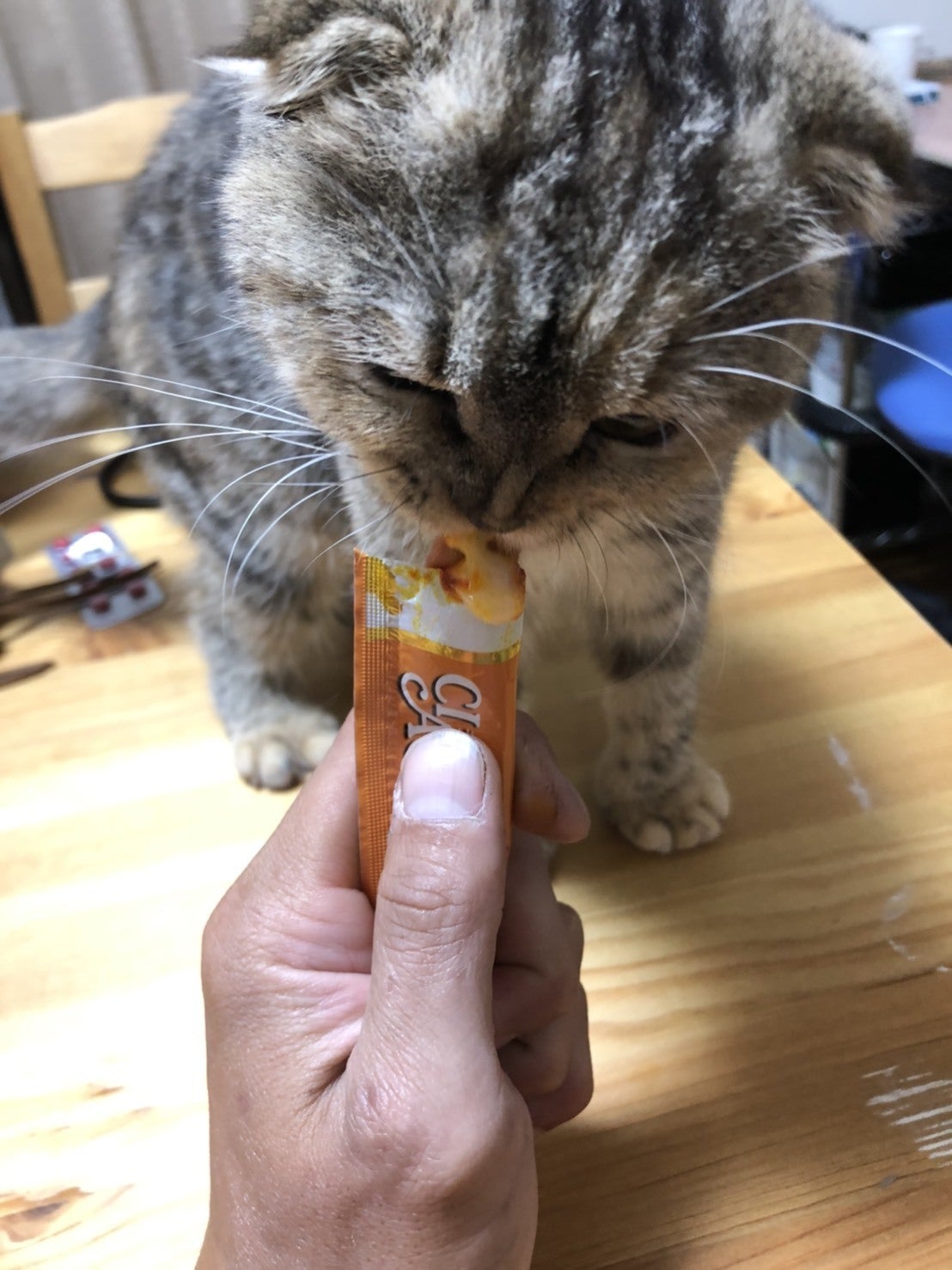 投薬の時間になると、大好きなちゅーるをおねだりしてくるほど