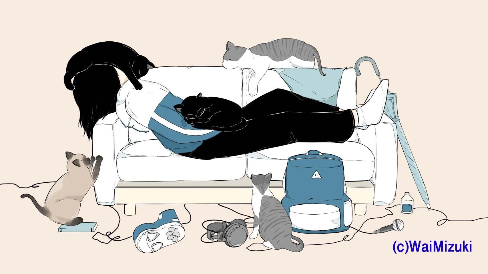 水彩色鉛筆画(B5サイズ)は、「にゃあと鳴く」試聴リリックビデオに使用されているものです。