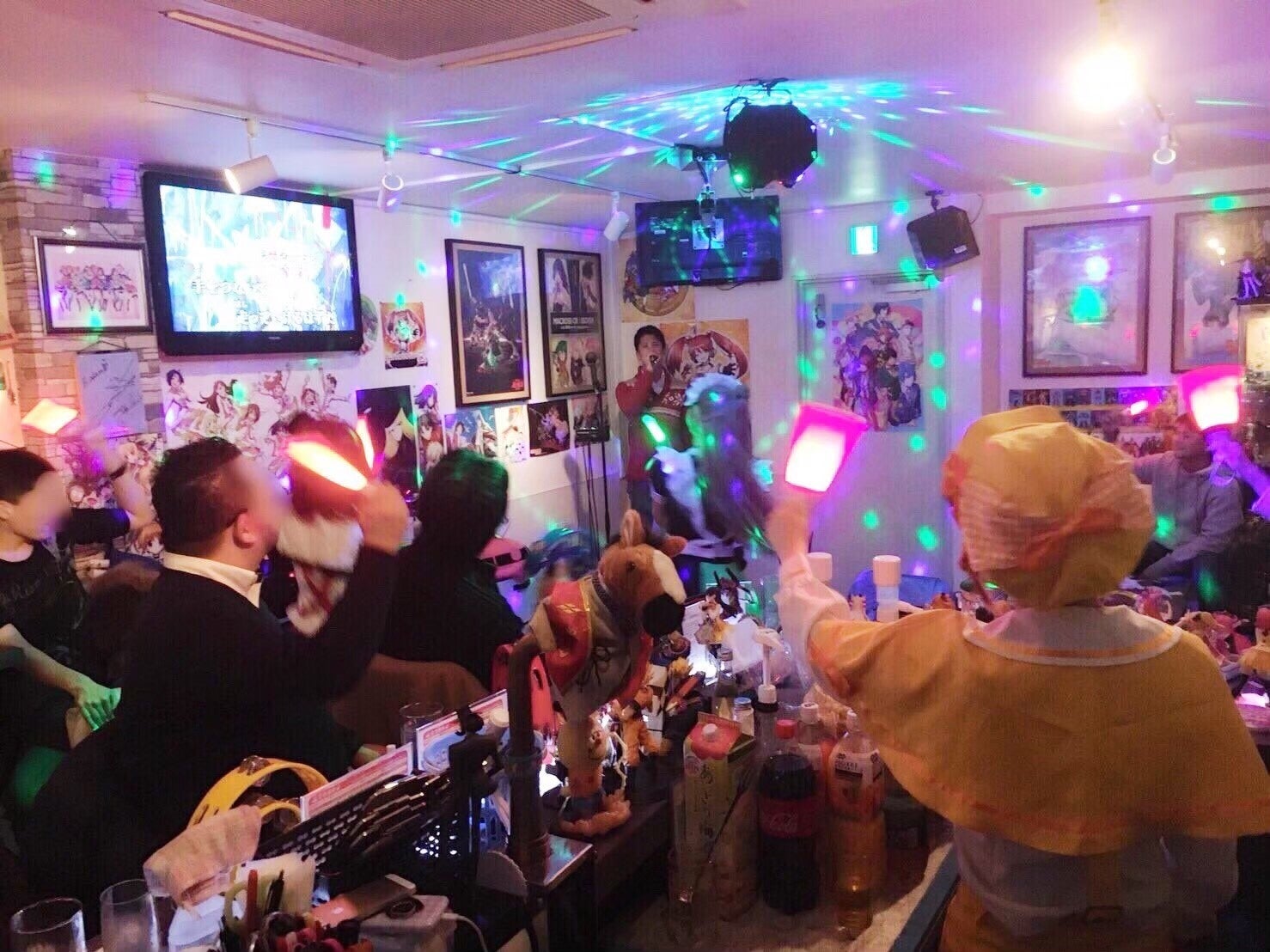 「アニソン盛り上げ隊」と呼ばれる女性スタッフが、お客さんがステージで歌うアニソンを”心を込めて”盛り上げます、というのがうちのお店の特長です。