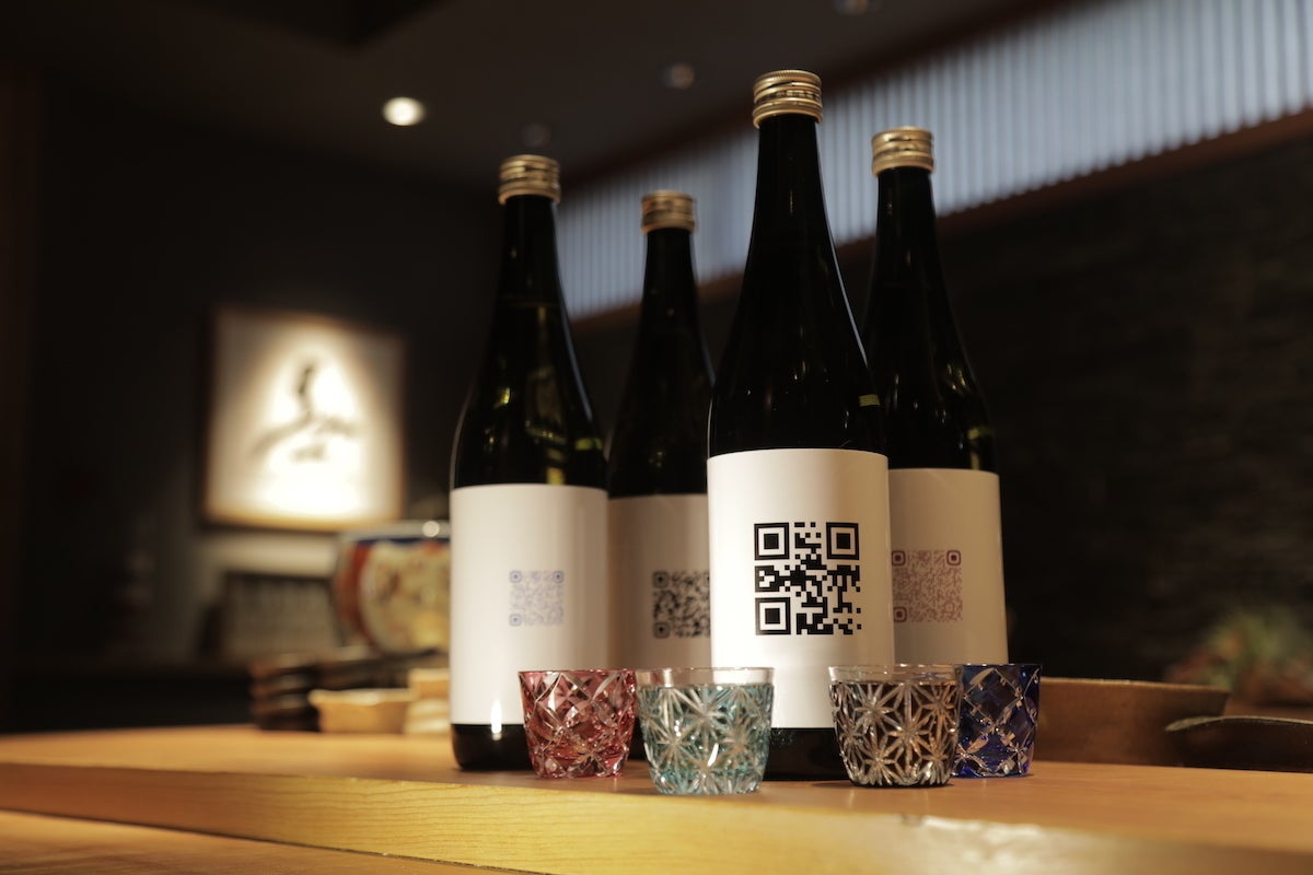 日本酒の表ラベルにはQRコードとお酒の名前である【Q】のみのデザインです。