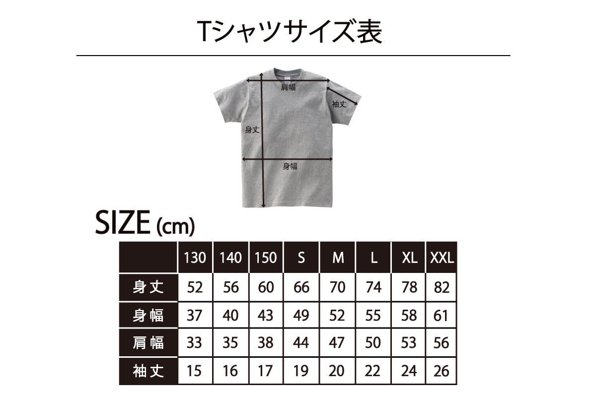 ※ Tシャツ・ロンT・パーカーのリターンを選択の方は下記のサイズ表をご確認の上、お間違いのないよう選択をよろしくお願い致します。