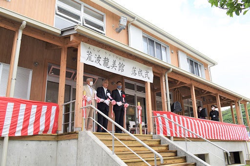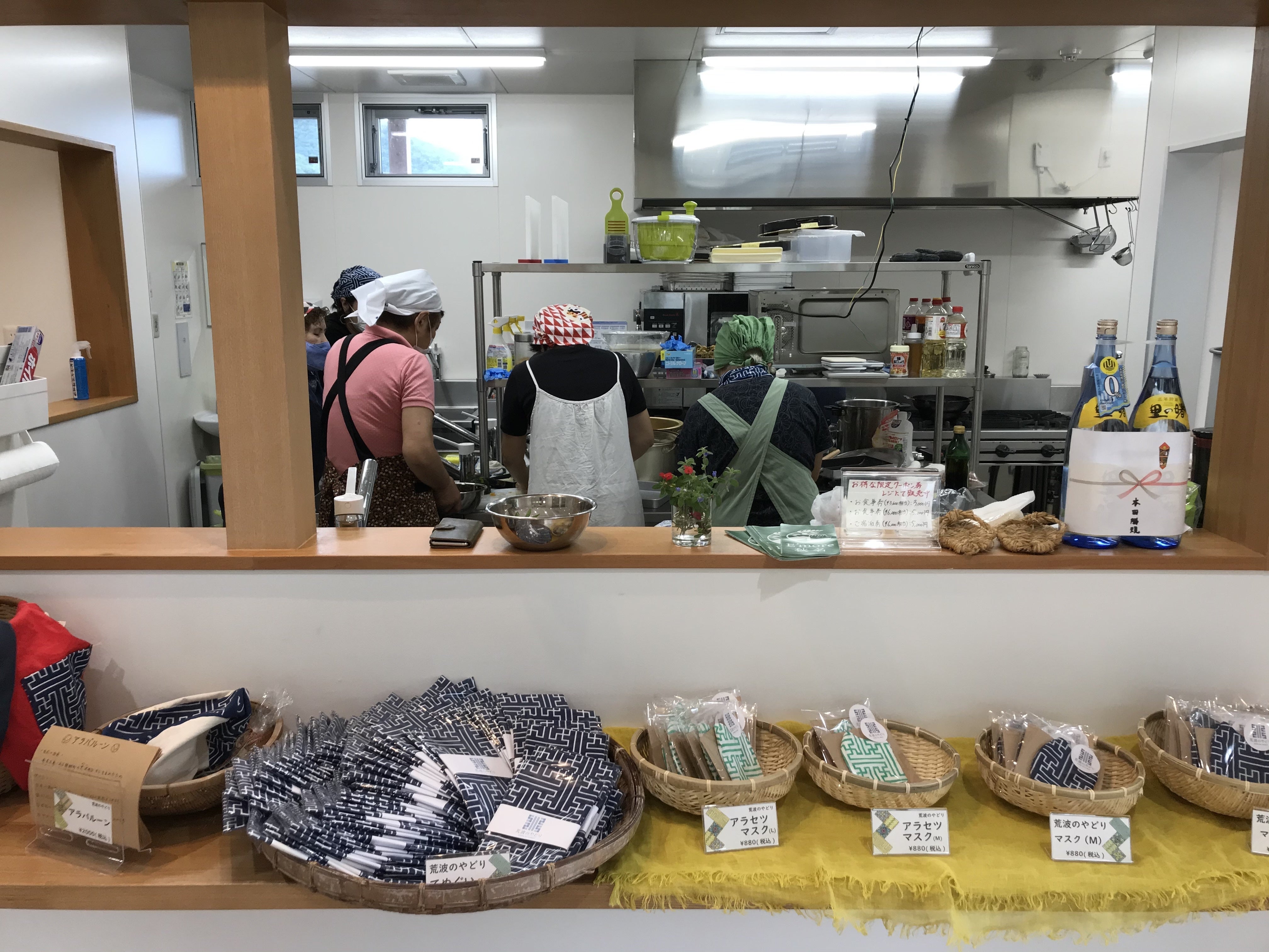 2020/06/08 13:44昨日、6月7日に荒波のやどり(町立荒波龍美館)の落成式が開催されました!コロナ禍の影響で4月末に予定されていた落成式が延期となり、規模を縮小したうえでの開催となりました。落成式自体は、祝賀会もなく非常に簡素なものでしたが、心配された天候にも恵まれた中、ご列席頂いた皆様には、荒波のやどり館内「あらば食堂」のスタッフ手作りのお弁当をお土産にお渡ししました。今回は、式典に合わせた特別弁当として少し豪勢な内容となっていますが、シマらしいお祝いの品のほか、シマの食材でしつらえました。どれも手作り、昔ながらの家庭料理として、しっかり出汁を取り、シンプルな調味料で味付けし、心にも体にも優しい内容となっています。そしてこの料理を作ってくれたのが、このおばたち。50人前のお弁当となり、早朝から大変な準備となりましたが、みなさん手際良く、そしてとても楽しい雰囲気で素晴らしいお弁当を作ってくれました。(私も食べてみましたが、抜群の味でした)無事に落成式を終え、ようやく施設としてスタートする動きが進められるようになりました。正式なオープンにはまだまだ課題が残っていますが、頼もしいおばたちと一緒に準備を進めていきたいと思います。 もっと見る